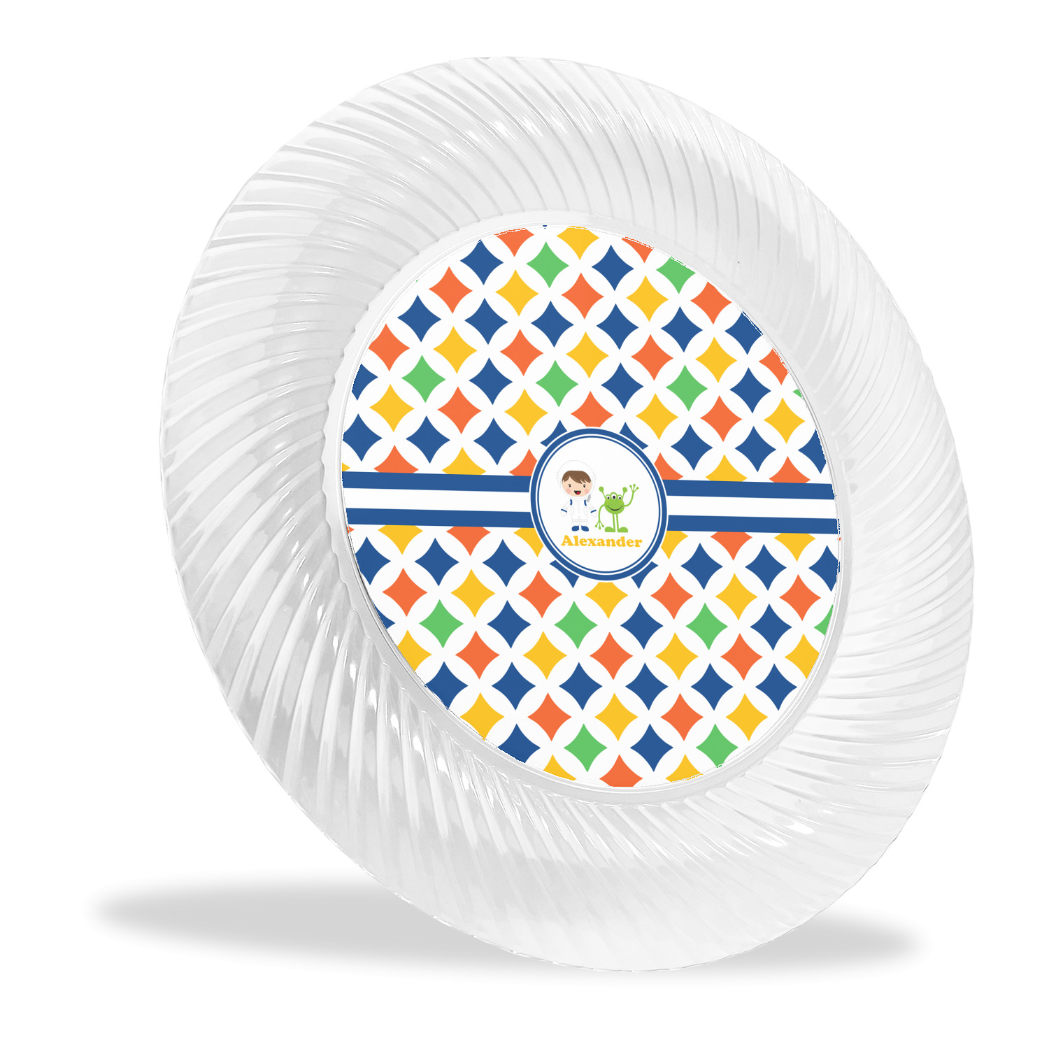 Made from a beautiful clear plastic plate as a base, your design is printed to the underside of the plate. The outside of these disposable plates has a classic swirl texture to it for a high quality look and feel.