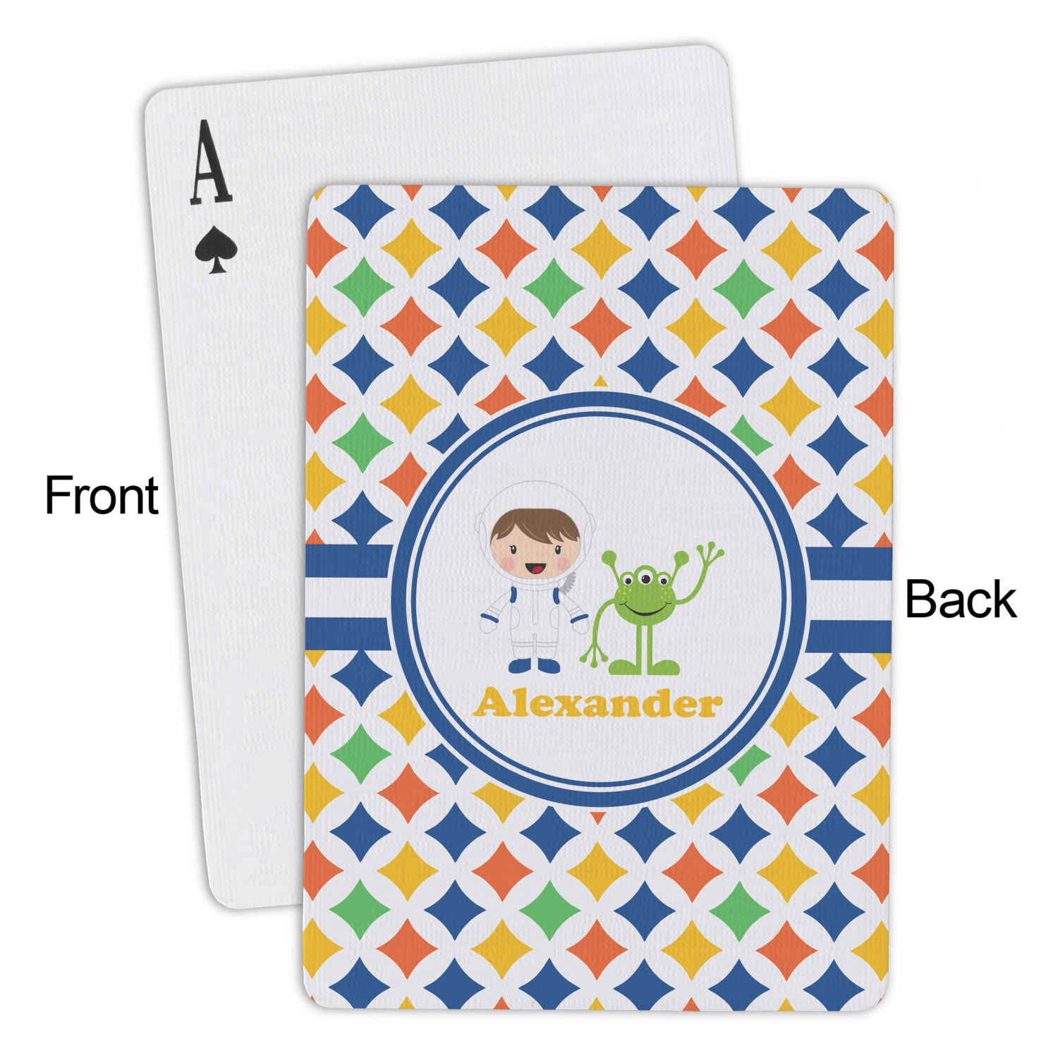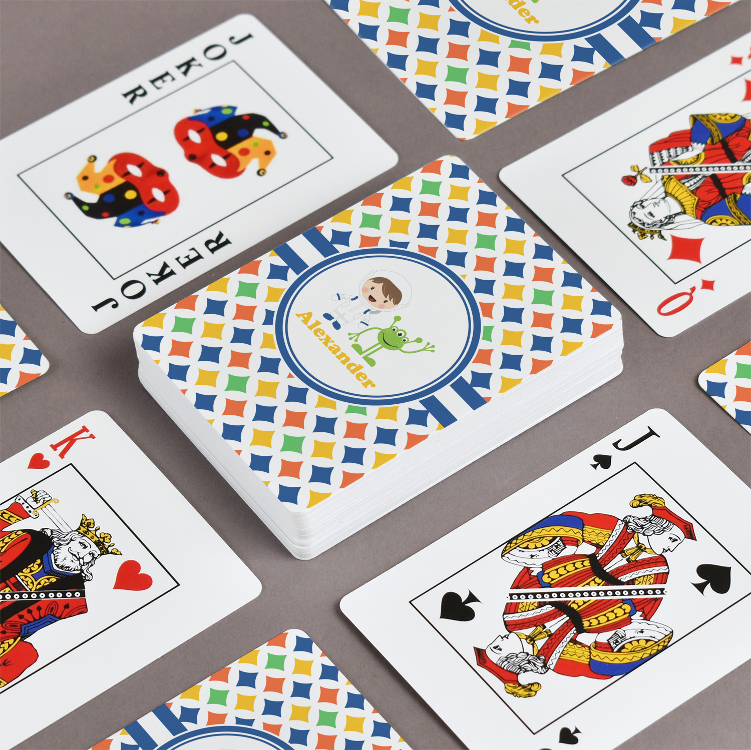 Our playing cards are perfect for family game nights or poker nights. A deck of customized playing cards ups the level of fun & entertainment to your game or poker nights. Imagine playing cards customized to match the theme of your game room, or game night, or that special event, or occasion with gambling tables!