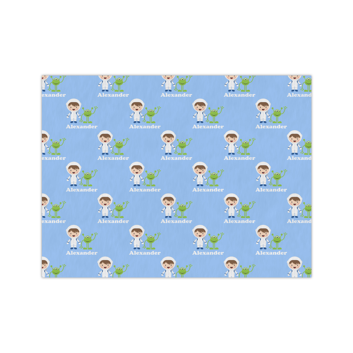 A white wide band trimmed in coordinating blue breaks up the pattern and showcases your little space guy with his martian buddy. Add personalization of your choice for that special touch.