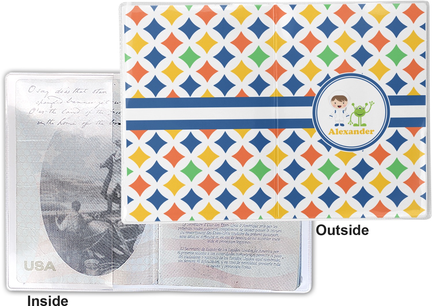 This cover is made of a sturdy clear vinyl with a personalized vinyl insert inside. There is a large and a small pocket on either side to hold the covers of your passport easily and firmly. The passport holder is approximately 7.5" x 5.25", the perfect size to snugly fit your passport. This slim cover is the perfect way to protect your passport without being one more bulky item you have to carry.