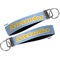 These key fob keychains are made from a polyester weave, right here in the USA. They feature a silver, metal clasp, attached to a round keyring. The piece gives the personalized wristlet a beautiful, finished look. Your customized design is printed on the outside of the keychain strap. We carry these wristlets in two sizes: small, which is 5 inches in width, and large, which is 5.5 inches in width.