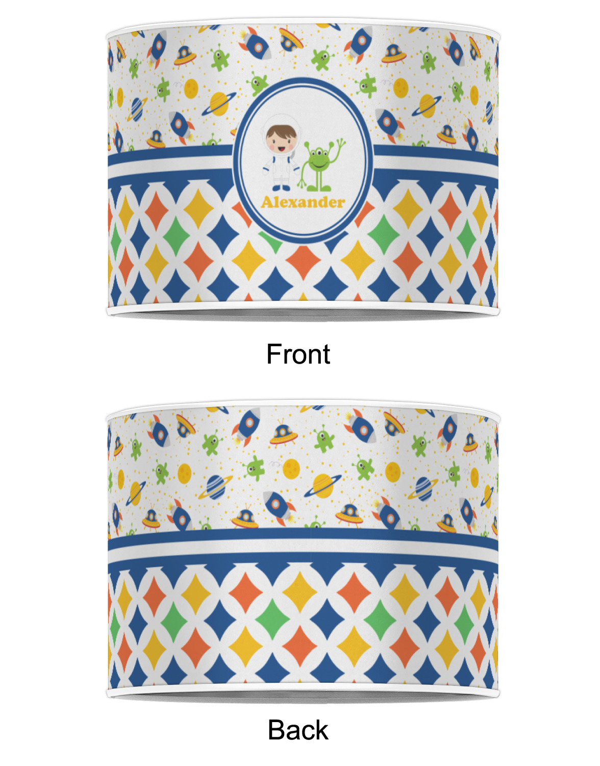 Our customized lamp shades also come in 3 different sizes: 8", 12" and 16", measuring at 8" in diameter by 6" tall, 12" in diameter by 8" tall, and 16" in diameter by 10" tall, respectively.