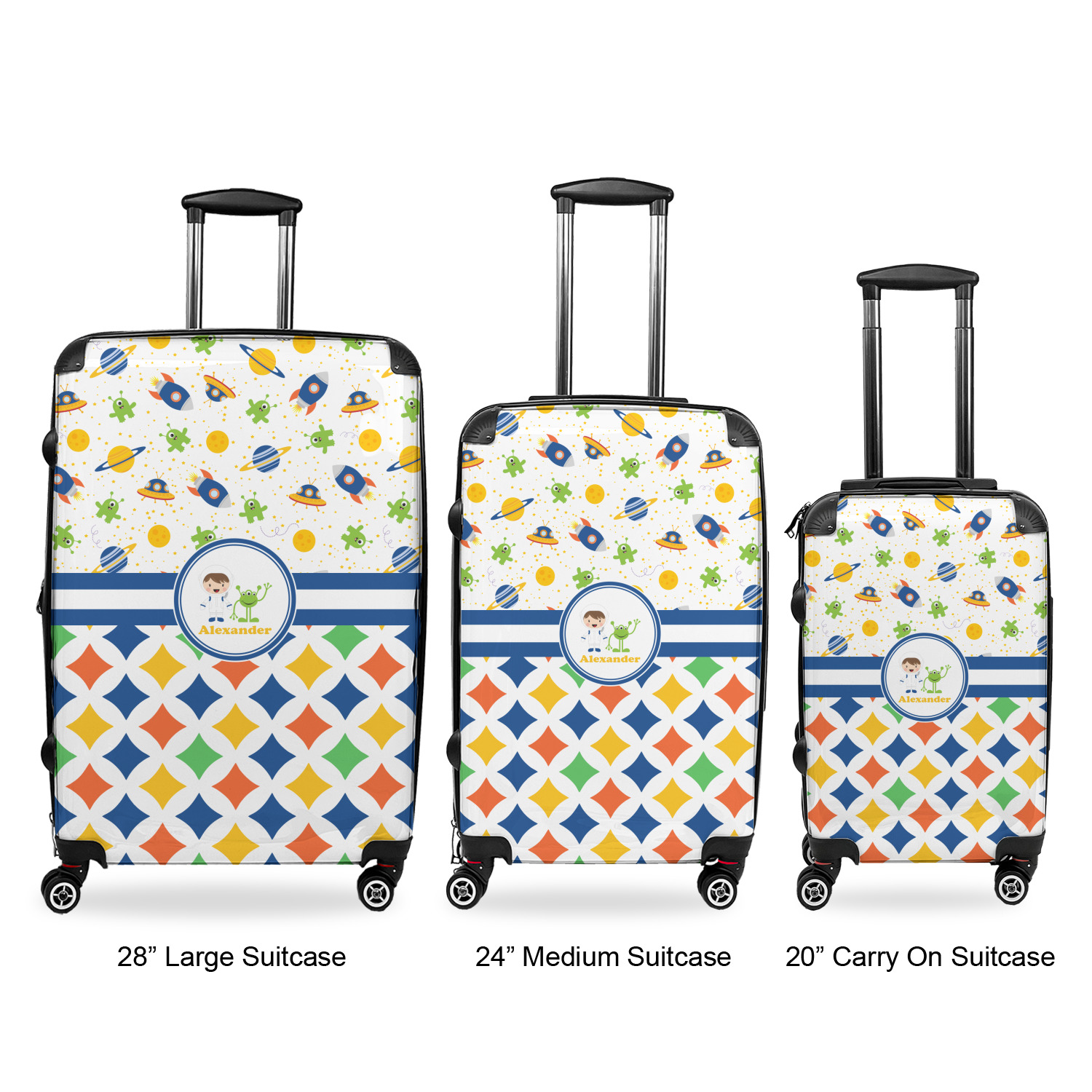 Planets Designs for 3-Piece Luggage Sets - 20" Carry On - 24" Medium Checked - 28" Large Checked
