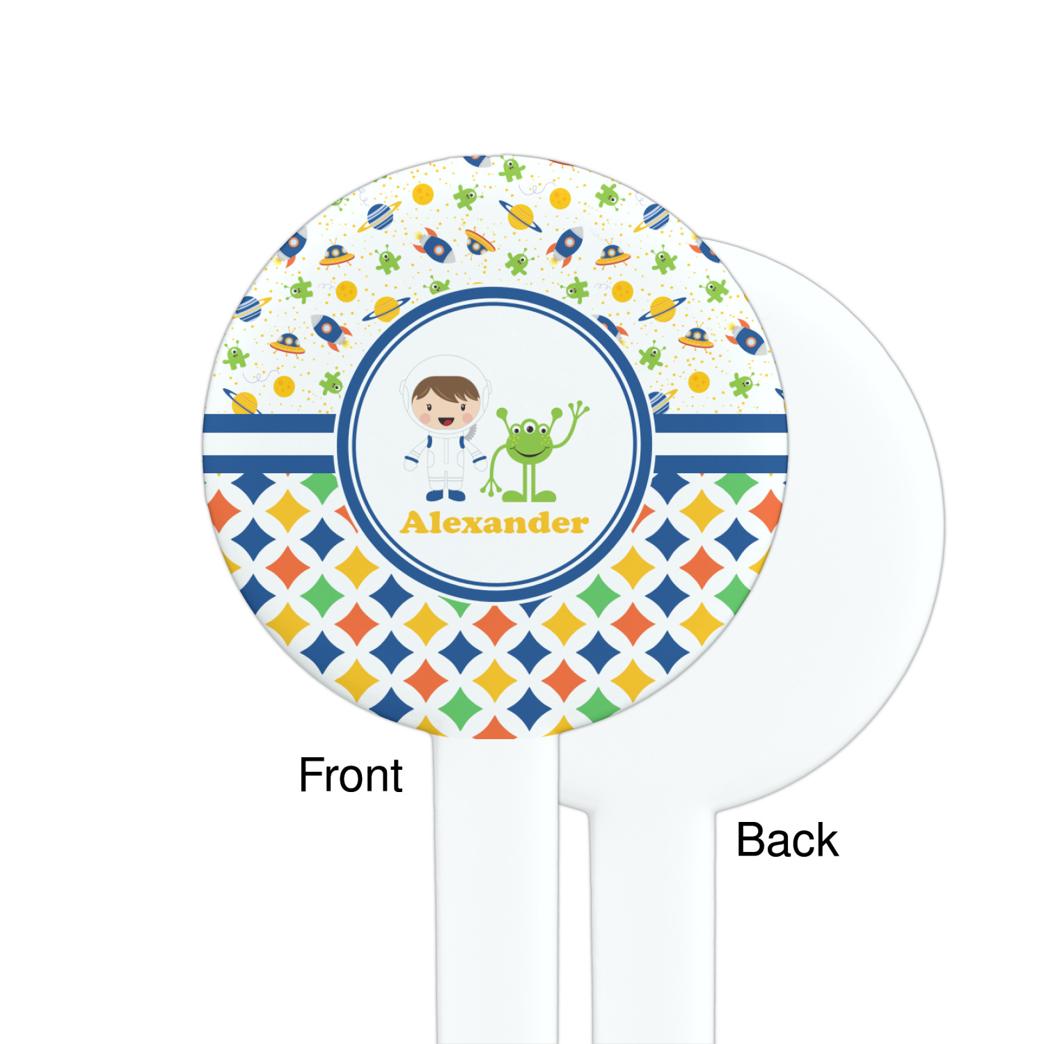 Planets Designs for 7" Round Plastic Stir Sticks - White - Single-Sided