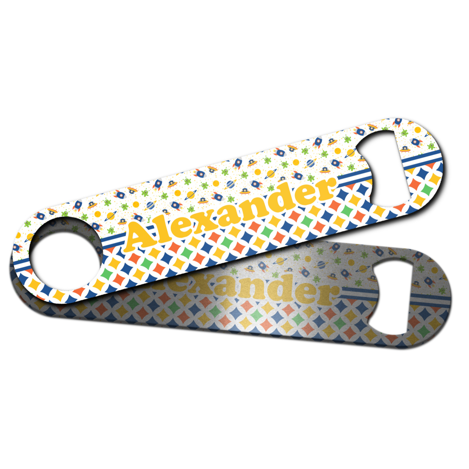 Stop struggling with the caps or your bottled beverages by purchasing one of our personalized bottle openers! These wrench-like custom bar blades are built to last. Customize one for your home's bar, or as a practical gift for a loved one!
