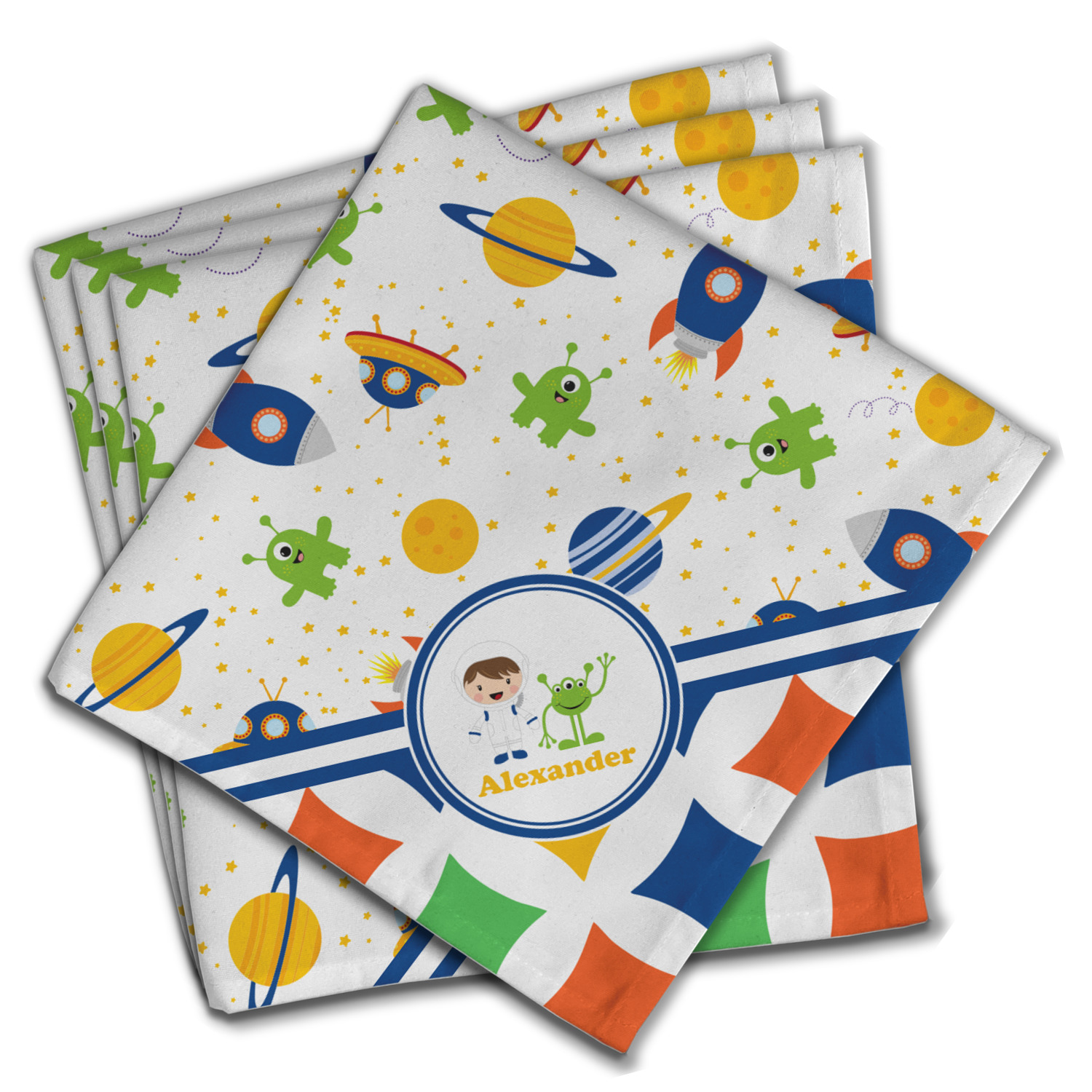 Each customizable cloth napkin is a polyester material guaranteed for long-term use. Since our napkins are cloth, it serves as a great reusable and eco-friendly dining decor. We sell personalized napkins individually or as a set of 4! Print your own unique design on all four napkins, or create four individual designs for each napkin! We offer two different napkin sizes - Cocktail napkins (approx. 10 x 10) and Dinner napkins (approx. 20 x 20). We print your design on one side, perfect for displaying your custom designed lunch napkins in any fold or table setting!