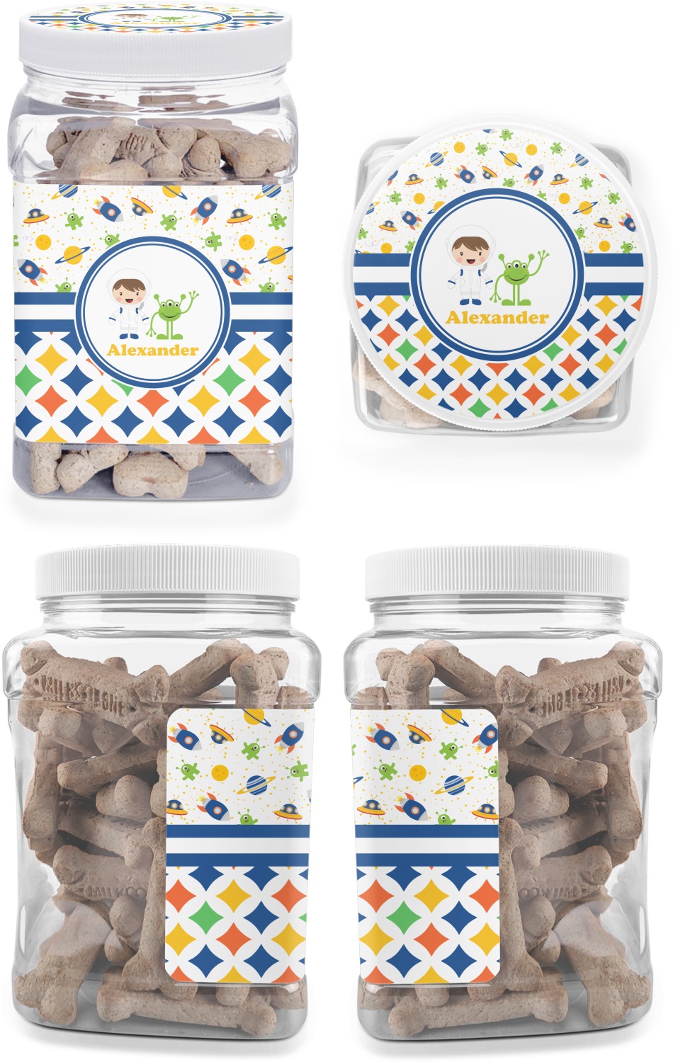 In the market for some other, cute pet supplies? Have a look at our Pet Accessories department, where you can customize a matching dog food bowl, dog food mat, or even a glass dog treat jar! Overjoyed with the idea of a customizable container? Explore the kitchen department within our Home and Garden category, where you can personalize snack containers for humans, as a gift, or just as a part of your kitchen decor!
