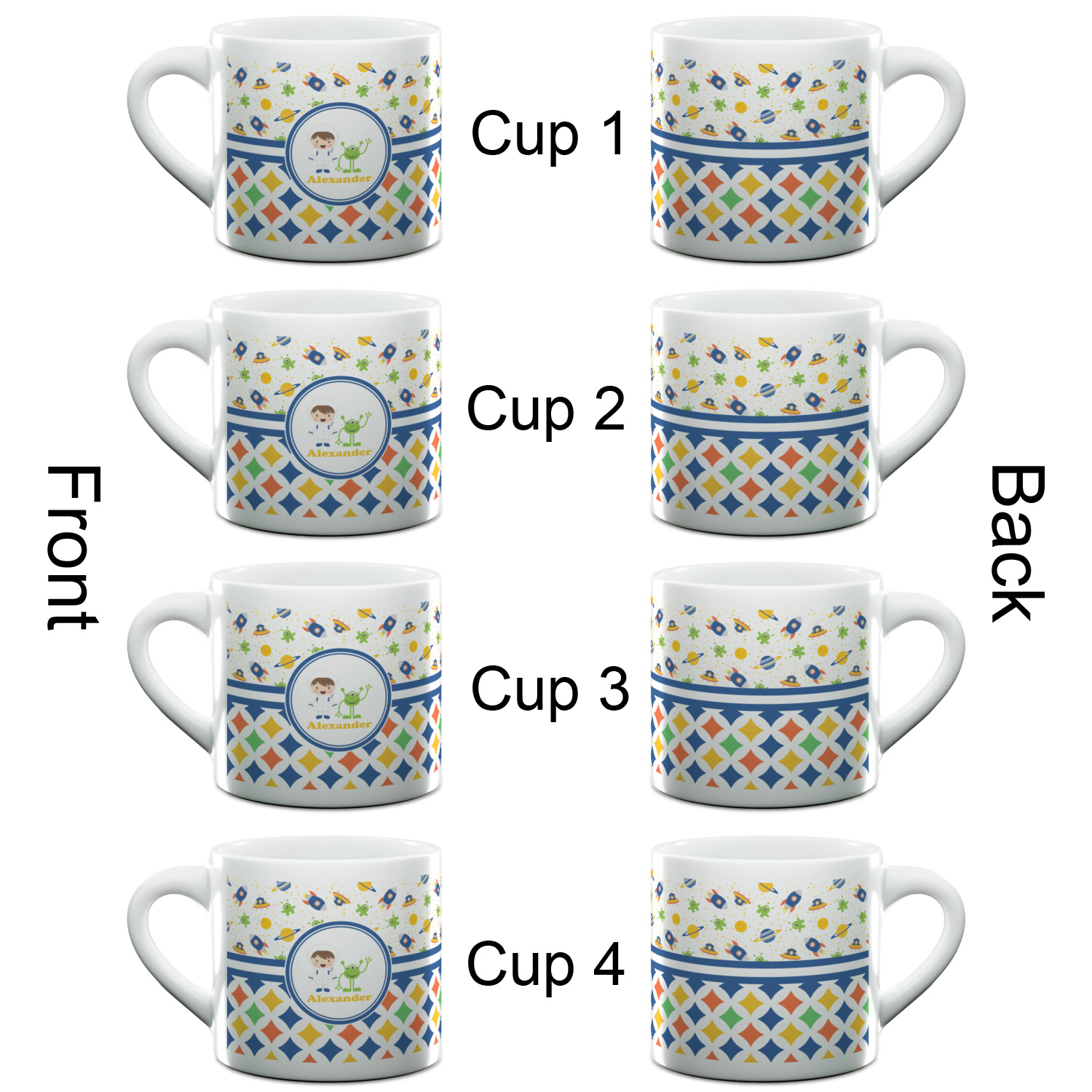 Pinkies out! Sip your favorite espresso with our personalized espresso cups! Our cute little espresso mugs are ideal for that morning shot of caffeine before you start your day! Make your mugs extra special by creating your own custom-designed espresso cup. Use our online design studio to customize designs, create your own, or upload a photo!