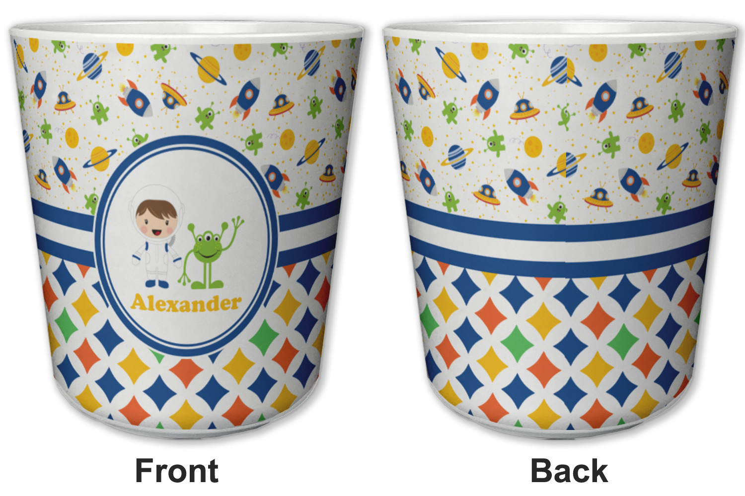 Made from a durable plastic, these tumbler cups are strong enough to withstand daily use and are perfect for young children. Each of these personalized plastic cups holds 6 ounces and measure at approximately 3" x 3" x 3.25". Place them in the bathroom as a rinsing cup, or give them to your kids during mealtimes. These 6 oz. plastic cups are BPA free, microwave and dishwasher safe, for your convenience. Your personalized design is displayed across the entire outside of this cup, while the inside is white in color to make your customization really stand out.