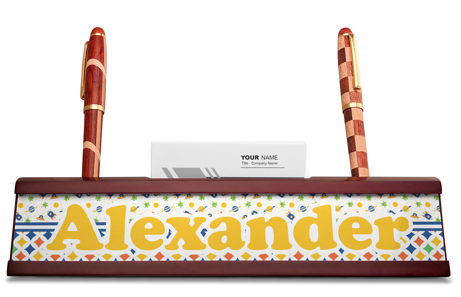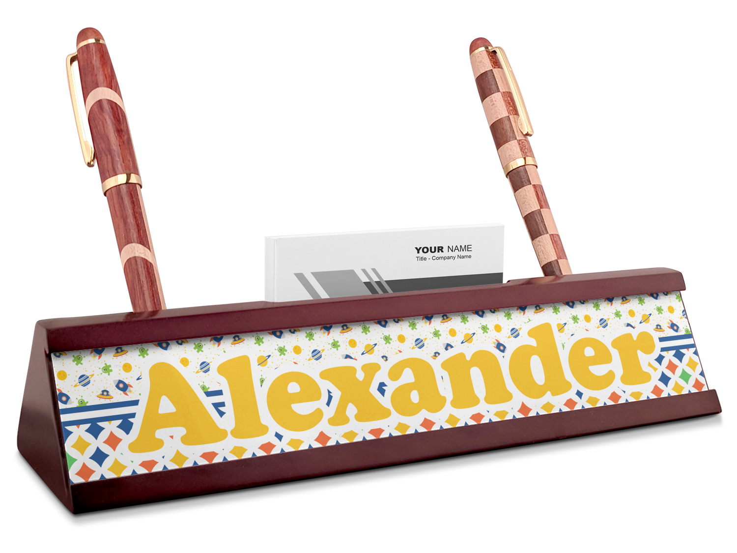 Planets Designs for Red Mahogany Nameplates with Business Card Holder