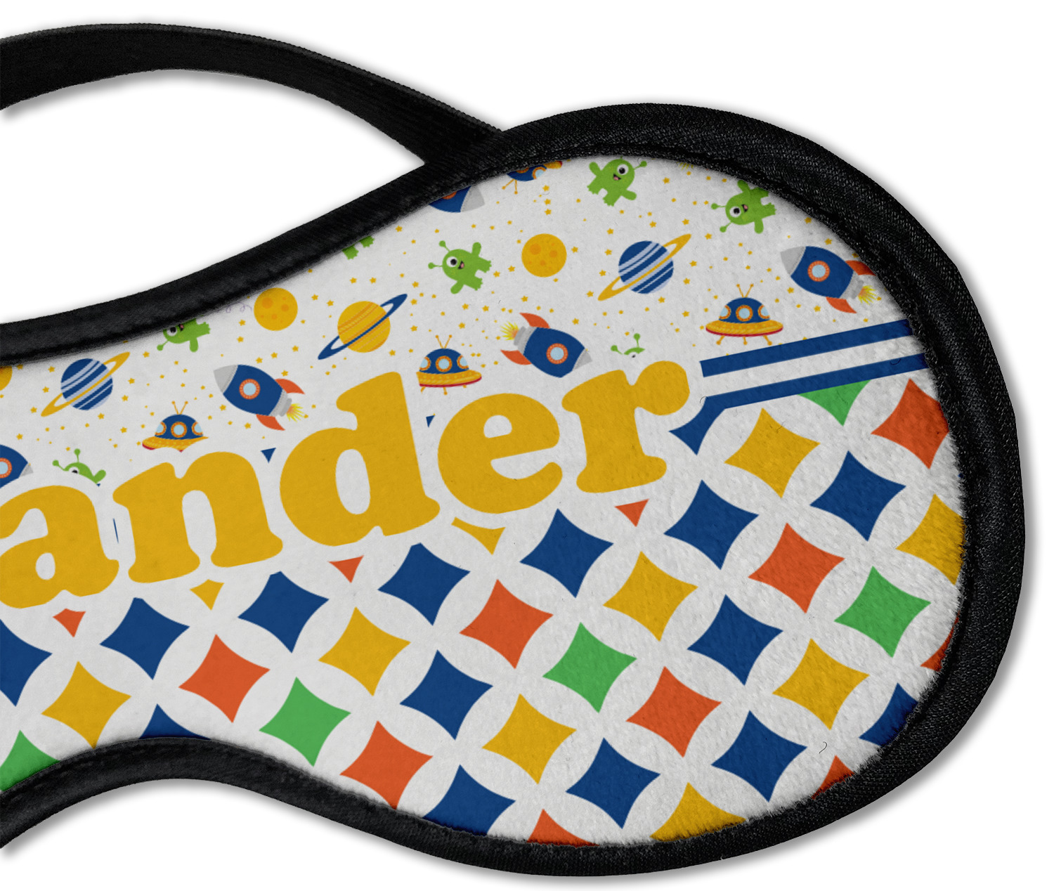 This eye mask has a super soft fleece on the back so that your face will feel snug. The front is personalized by you! There is a black elastic band that goes behind your head. The band is stretchy enough to be a one size fits most. The eye mask comes in 2 sizes: small for regular adult sizes and large for a larger area coverage. The black lining and elastic give it a nice finished look. You will never sleep or nap more comfortably than with this eye mask. These are great for napping when traveling or just at home!