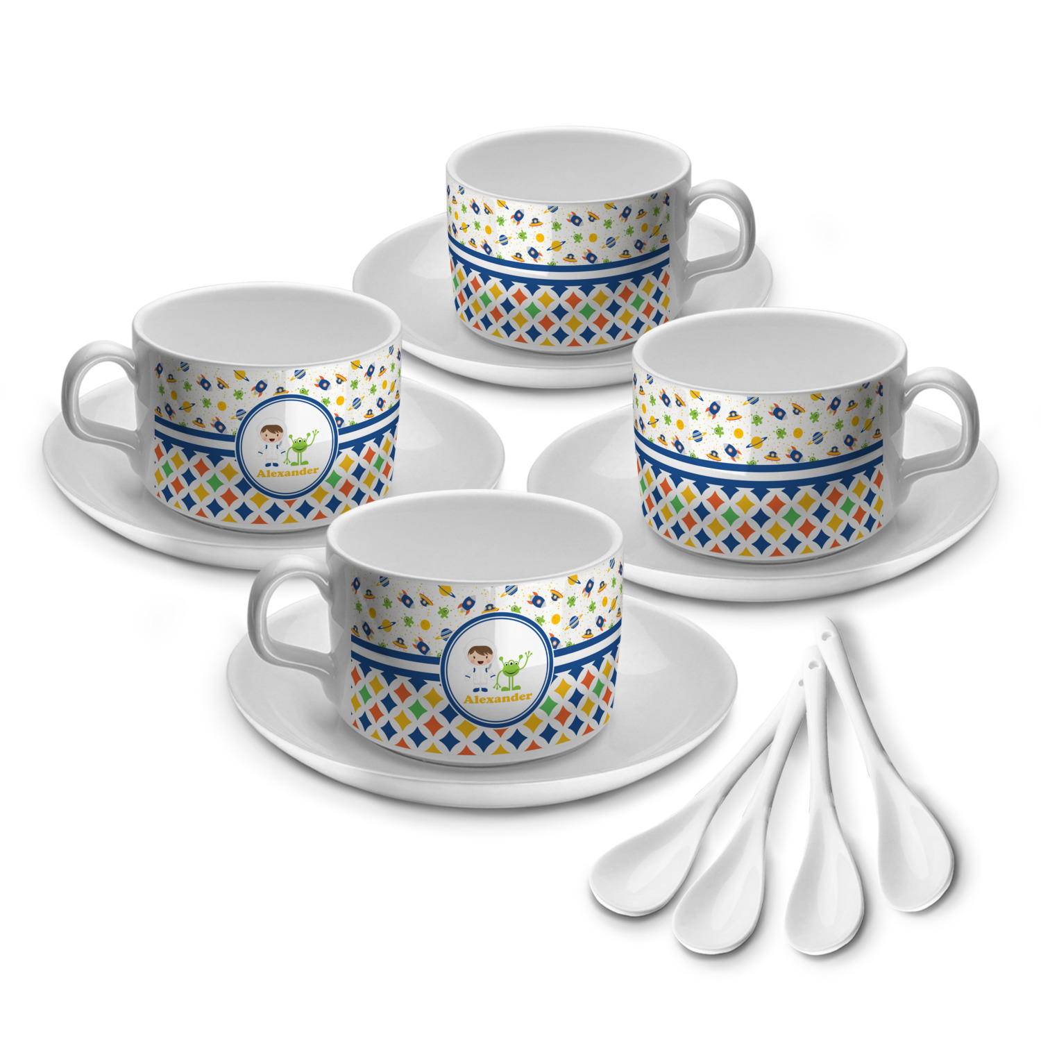 Personalize your cup with the perfect design! The white ceramic makes for a bright background to whatever personalization you decide to add to your little cup. Give your tea or coffee some class! Choose from thousands of patterns and fills in our system to fit your personality! Change whatever elements you like from the text to the ribbons to the graphics.