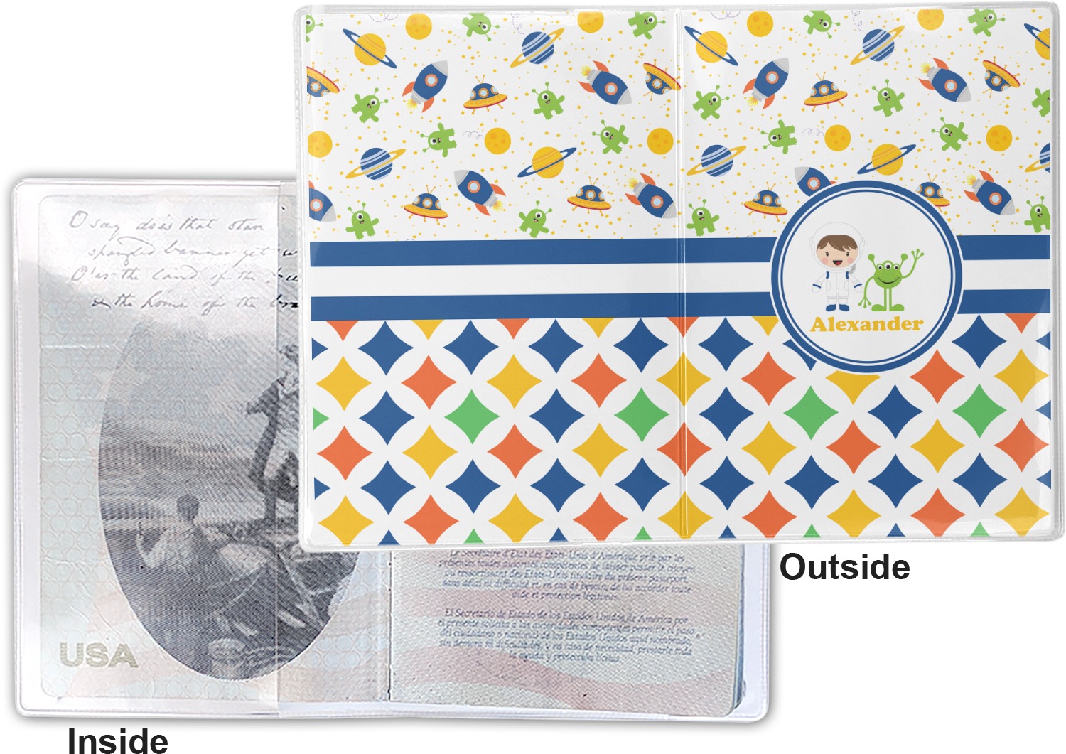 This cover is made of a sturdy clear vinyl with a personalized vinyl insert inside. There is a large and a small pocket on either side to hold the covers of your passport easily and firmly. The passport holder is approximately 7.5" x 5.25", the perfect size to snugly fit your passport. This slim cover is the perfect way to protect your passport without being one more bulky item you have to carry.