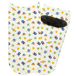 Explore another galaxy with this whimsical space design. Fun colors of blue, orange, yellow, and green make this space exploration come alive. The design is full of little green martians, blue and orange rockets, blue, yellow, and orange spaceships, yellow and blue planets, and yellow stars galore.