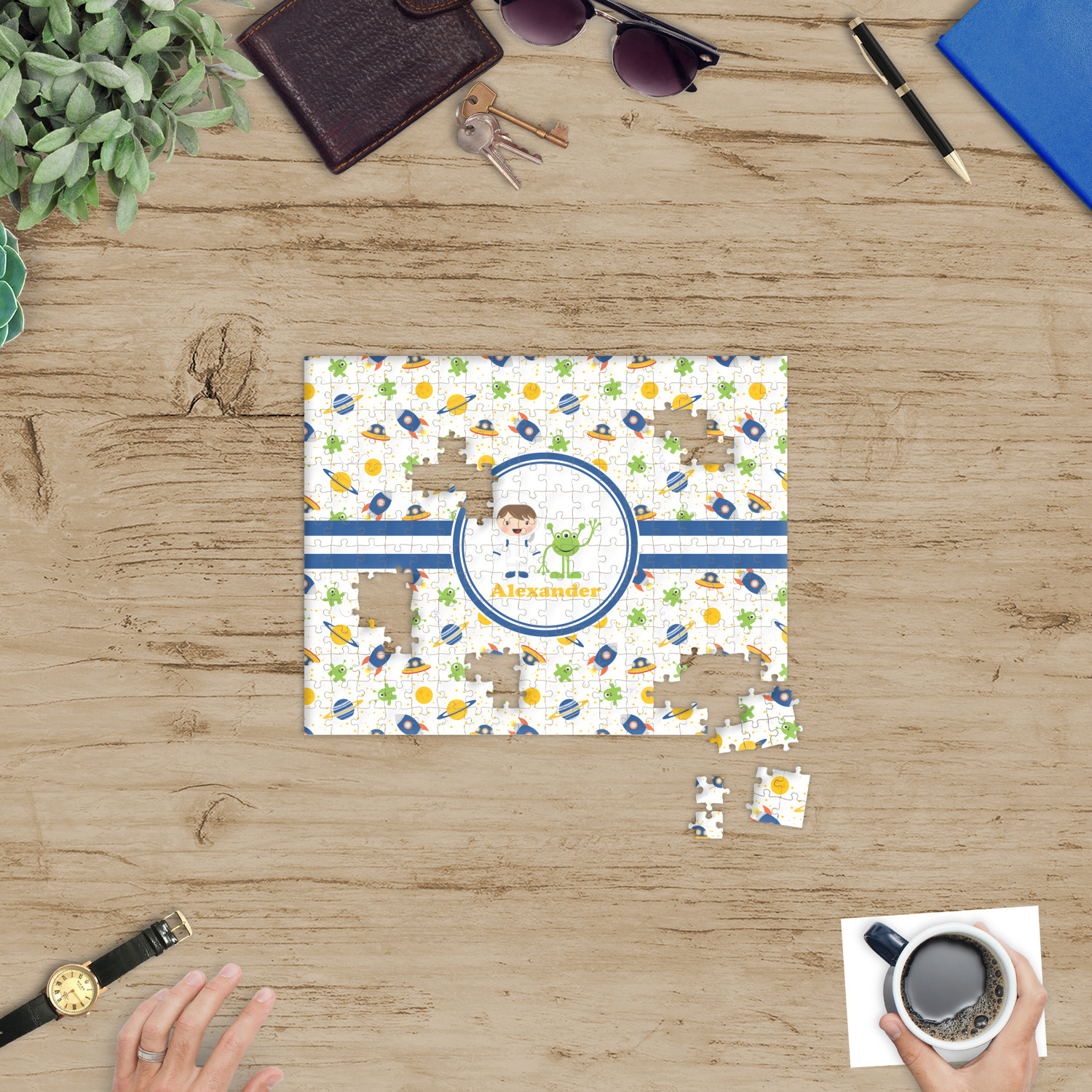 At YouCustomizeIt.com, you get to decide what you want on your puzzle. A scenic picture, a family photo, framed photo, photo with text, artwork, logo, patterns etc. You decide what you want.