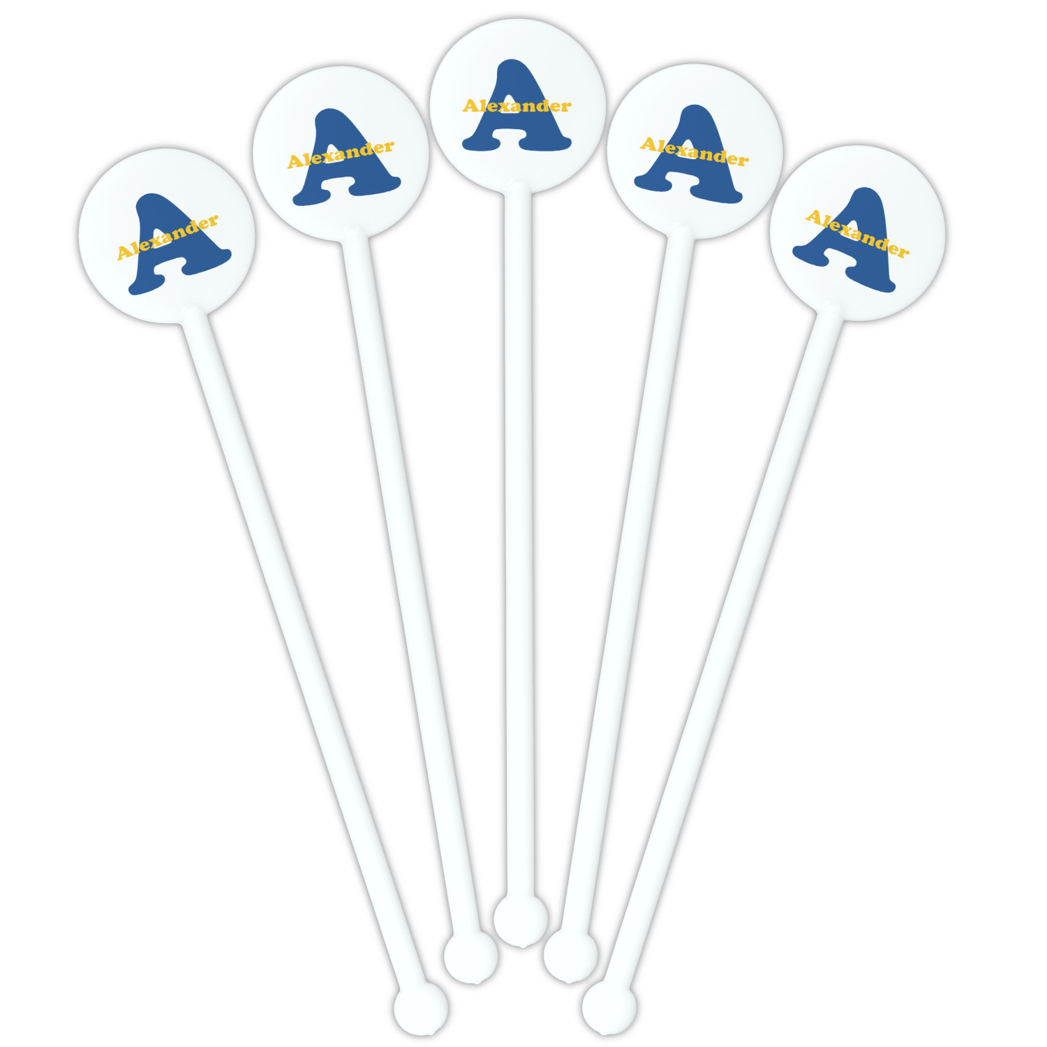 Rockets Designs for 5.5" Round Plastic Stir Sticks - White - Single-Sided