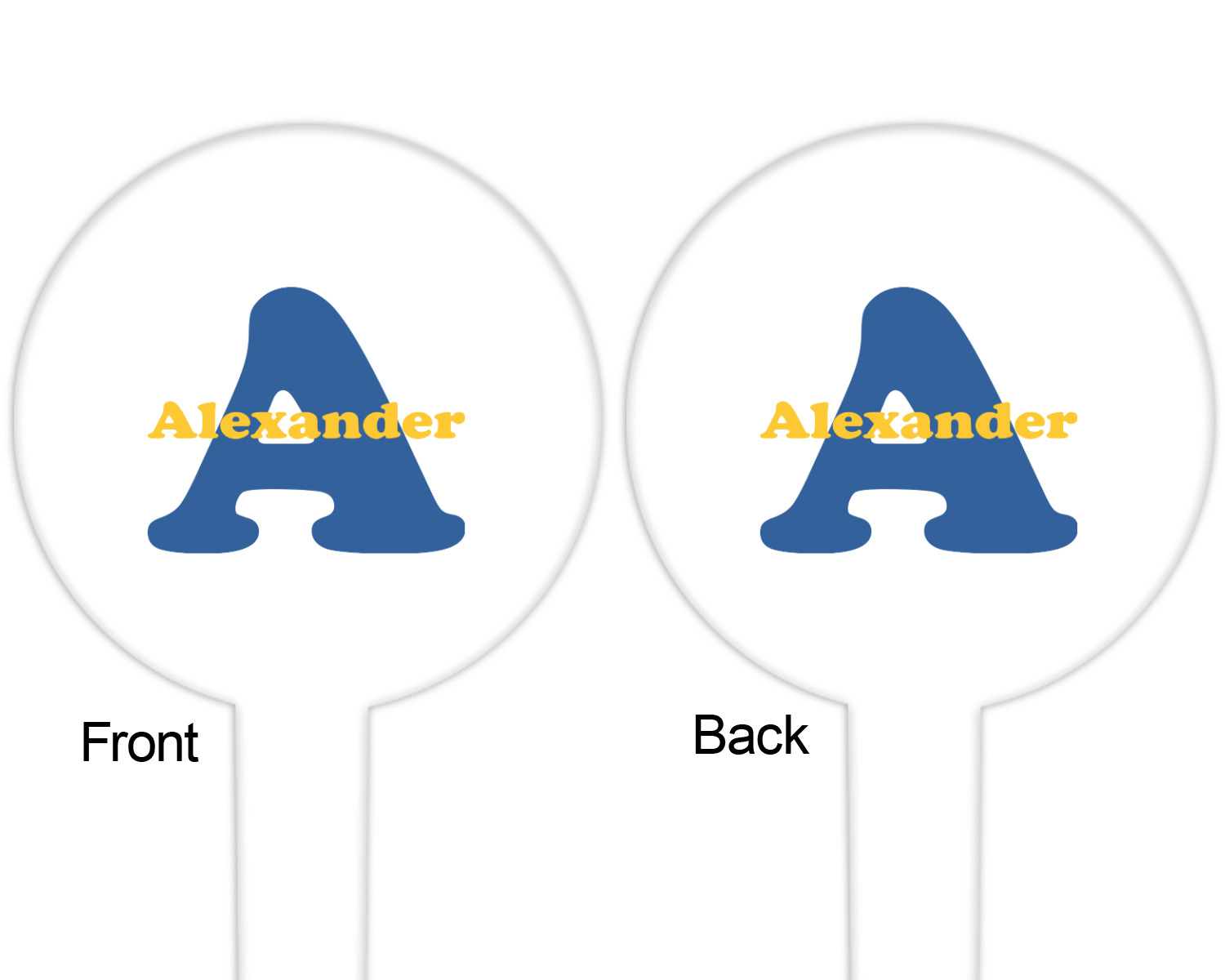 The round disc on these food & drink picks can be customized and personalized to your specifications. Your image will be printed in full color on one side or both sides. You can use the same image on both sides or use two different images.
