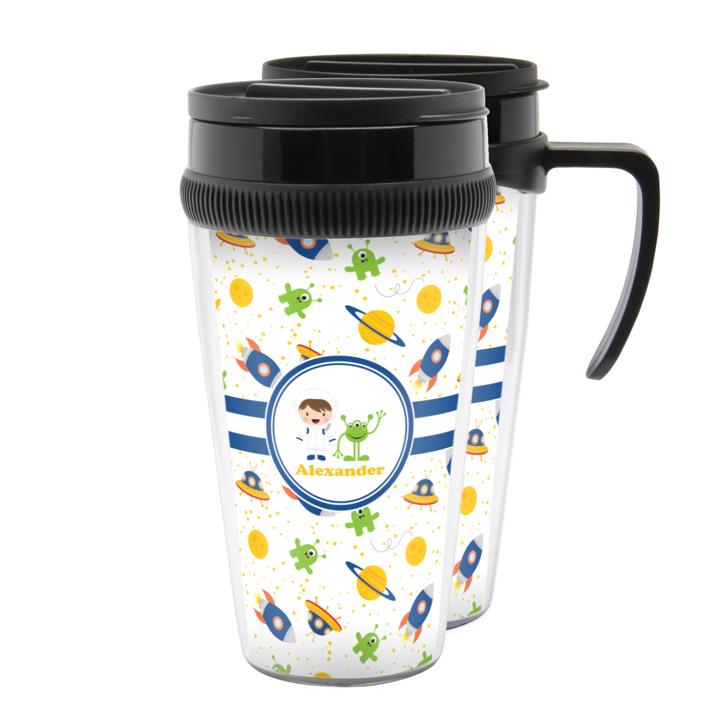 Keep your drink secure while on your daily commute with one of our personalized travel mugs! These travel mugs will add a splash of color and creativity to your kitchen counter-top, car cup holder, office desk, or wherever you choose to place them! With these custom mugs, you'll never have to settle for a boring, run-of-the-mill travel mug.