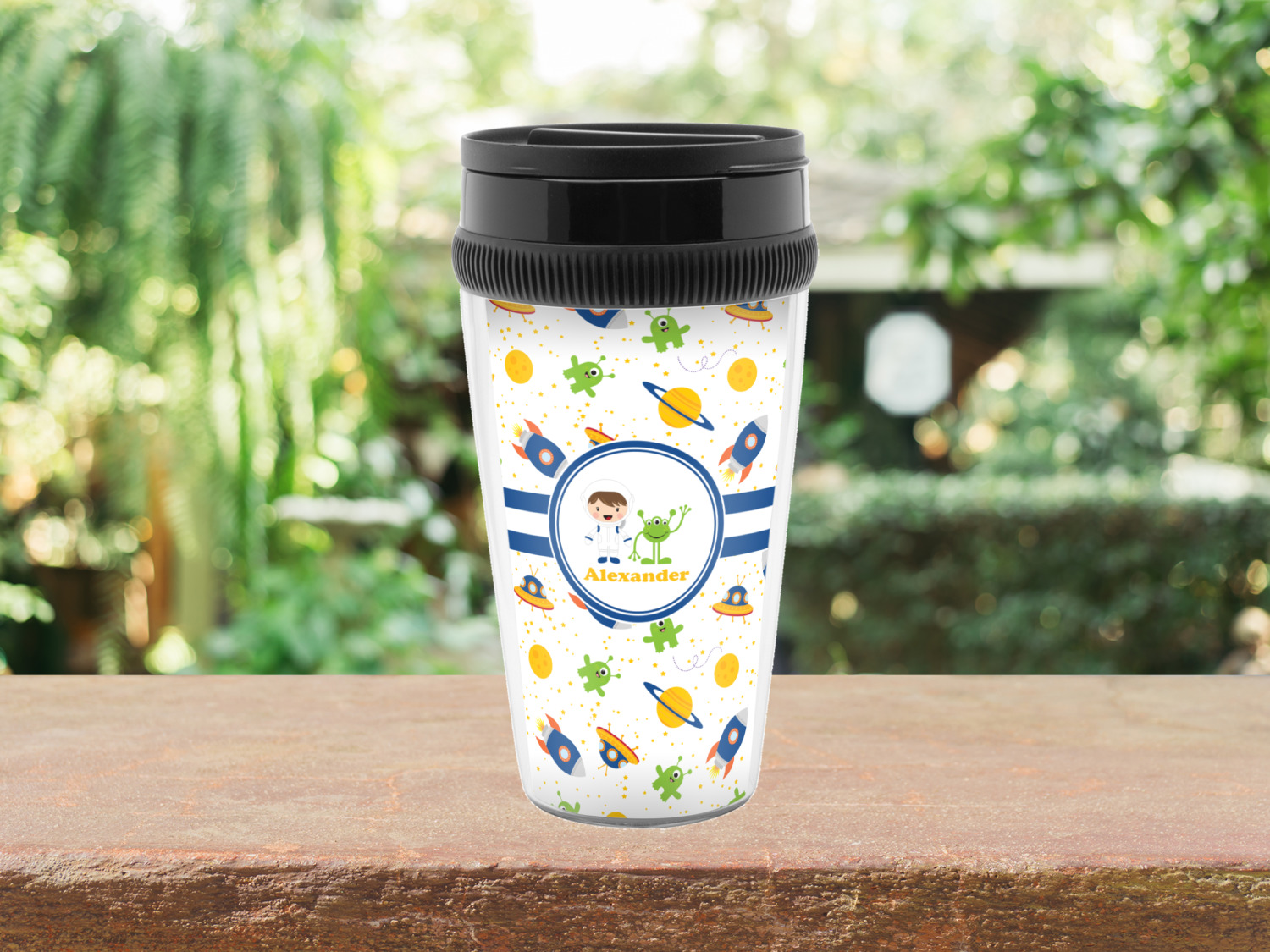Keep your drink secure while on your daily commute with one of our personalized travel mugs! These travel mugs will add a splash of color and creativity to your kitchen counter-top, car cup holder, office desk, or wherever you choose to place them! With these custom mugs, you'll never have to settle for a boring, run-of-the-mill travel mug.