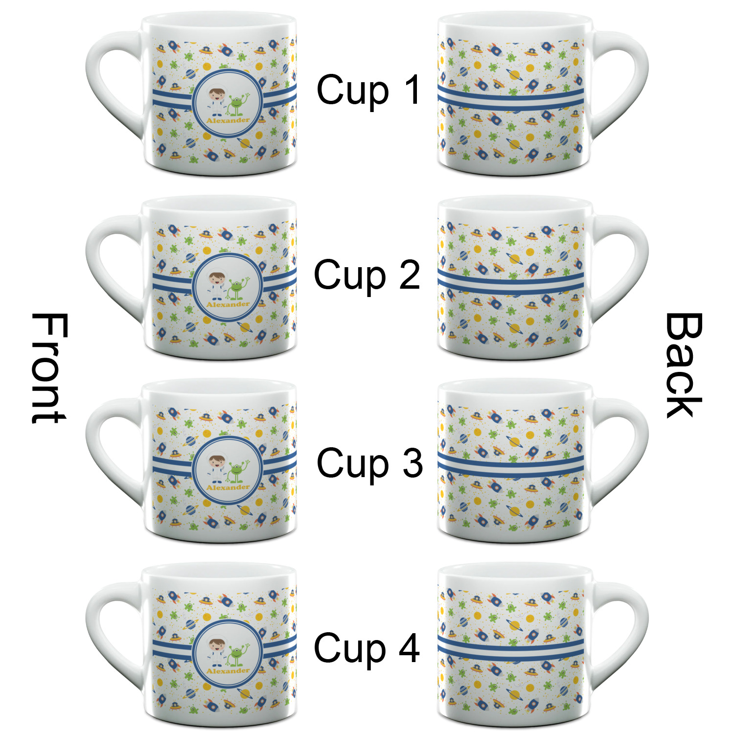 Planets Designs for Double Shot Espresso Cups - Set of 4