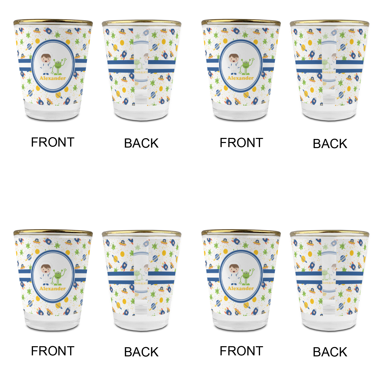 Planets Designs for Glass Shot Glasses - 1.5 oz - with Gold Rim - Set of 4