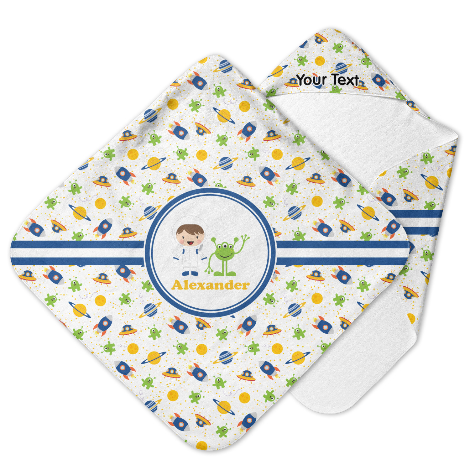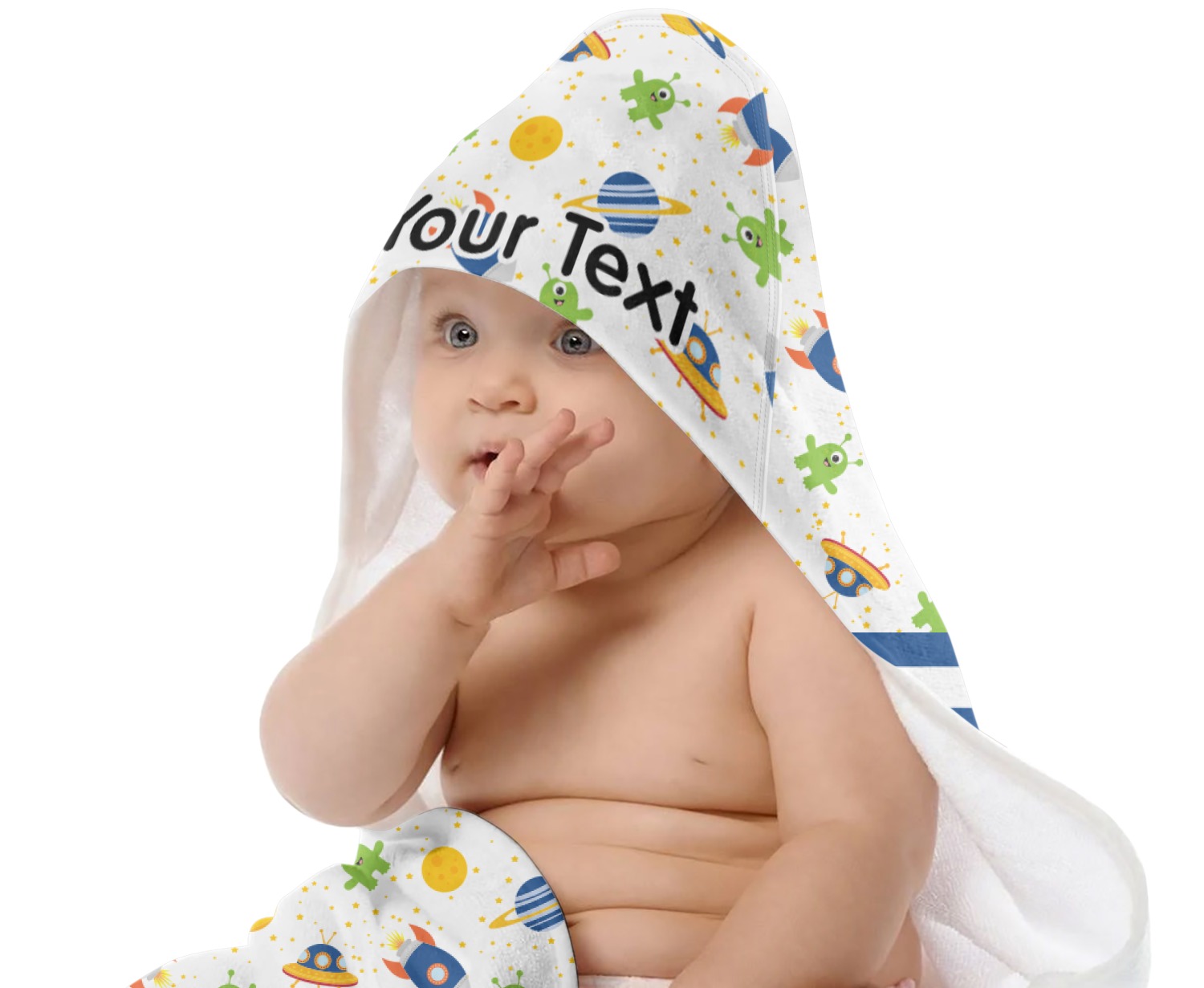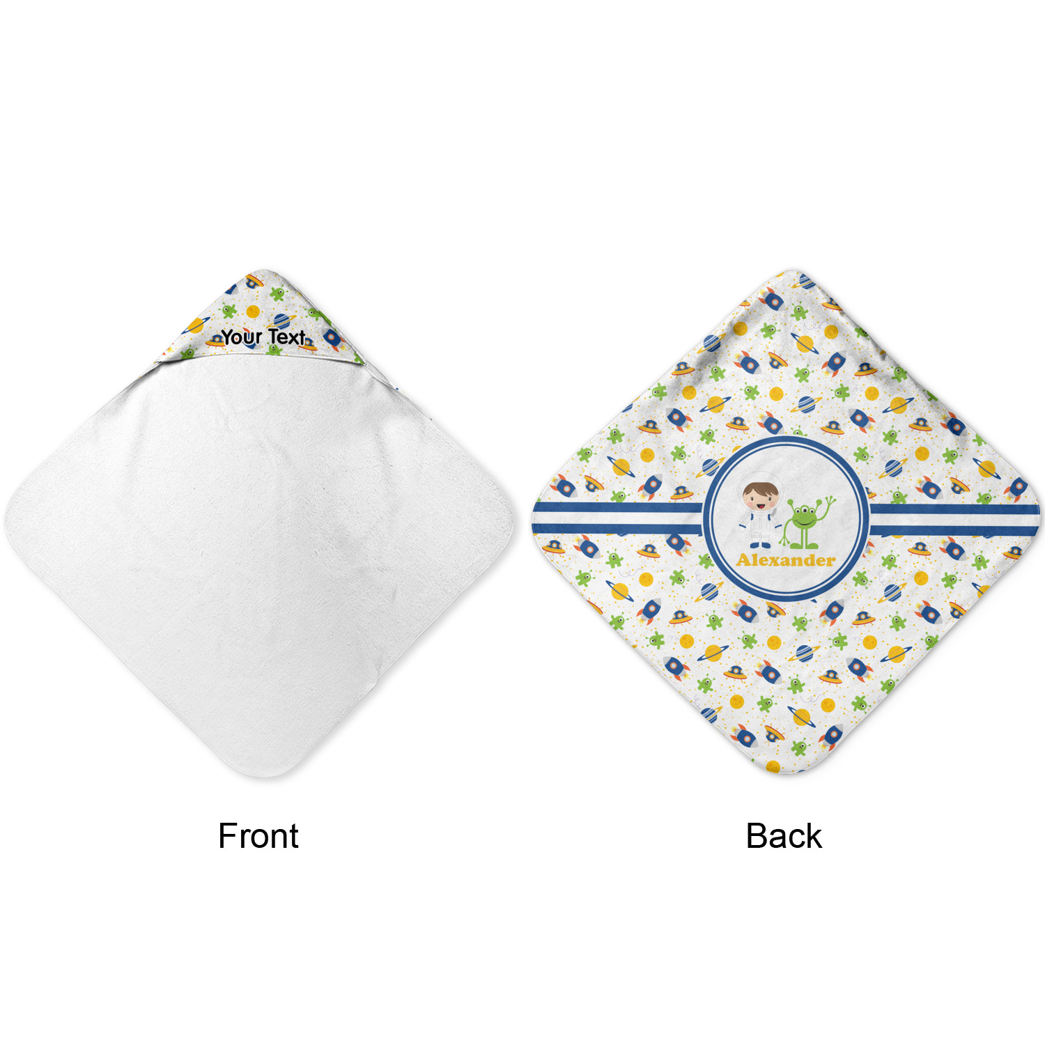 This baby towel is made with a plush microfiber velour and cotton terry. and thus will be soft and gentle against your newborn's skin, but also, very absorbent. Your customization is printed across the front & the hood, while the inside is a classy white.