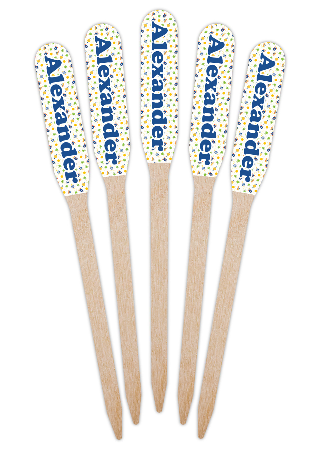 Our paddle style food & drink picks are available in 2 print styles - single sided and double sided.