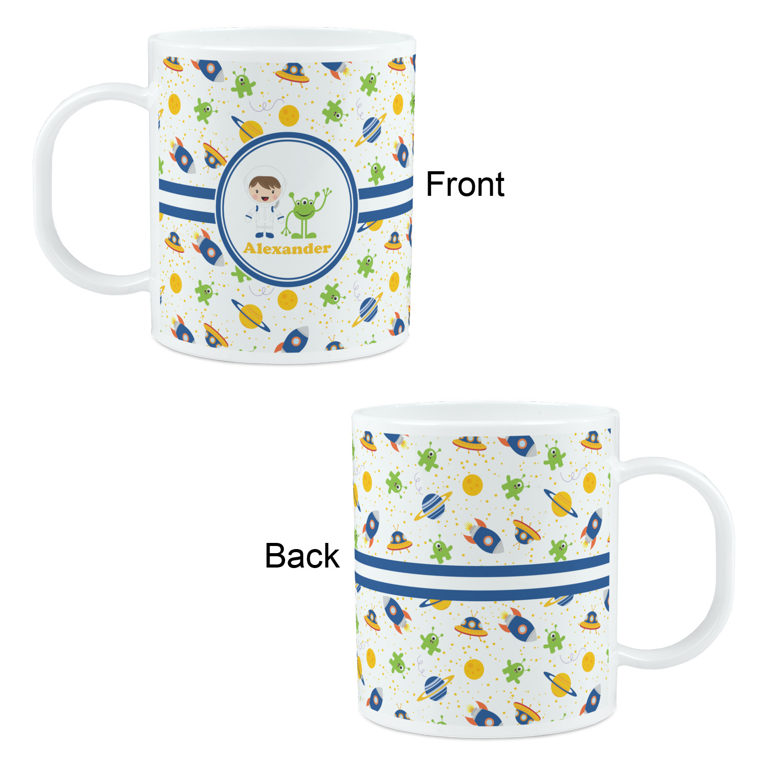 At 11oz, the mug is not too big for a toddler to hold, but not too small to where they don't complain about it still being a "baby cup." This BPA free cup is both dishwasher and microwave safe!