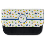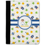 A blue and white band is placed in the middle of the design and used to showcase your little space traveler and his martian buddy. Add your own personalization for that special touch.