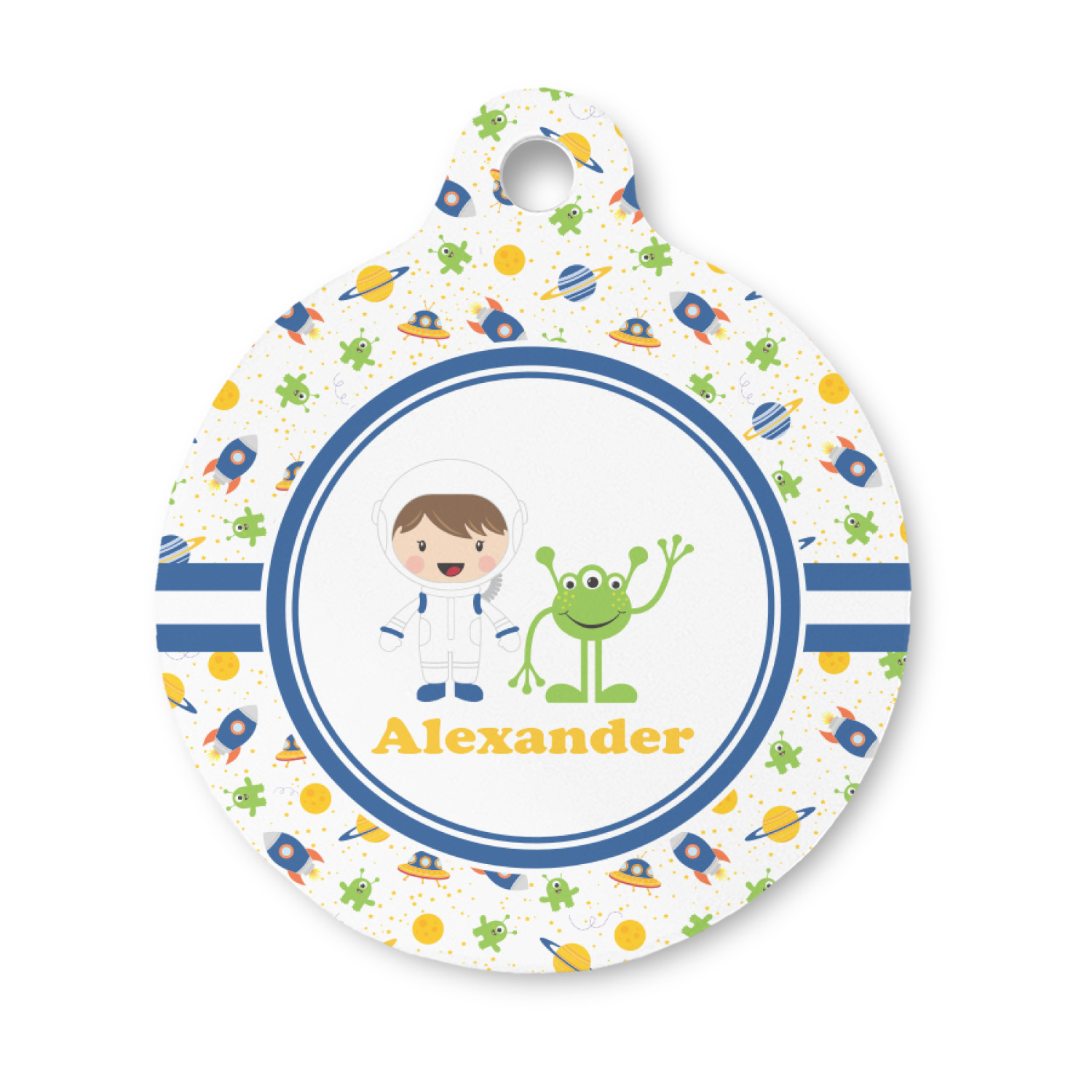 Go ahead; skip the monotony of plain pet ID tags with your very own, customized & personalized, round pet tag! This pet ID tag, fitting for both cats and dogs, will catch the eye of any onlooker (humans, canines, and felines, alike!) and accentuate your pet's individual personality.