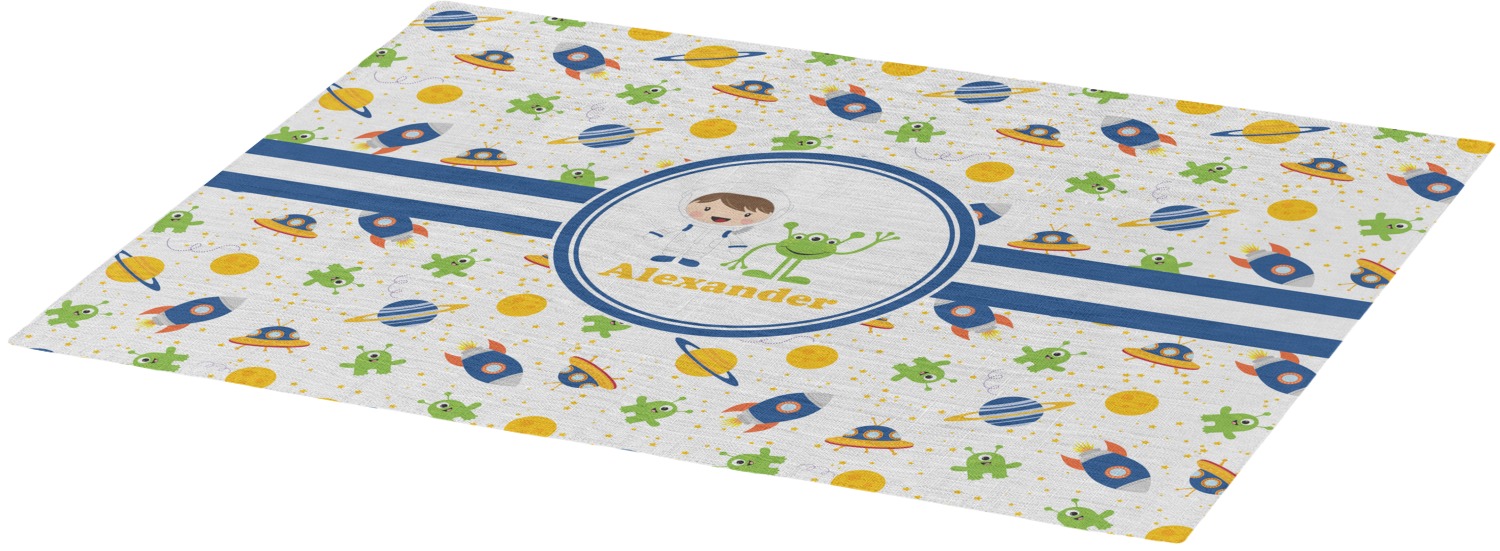 Each of our table mats are a poly twill material with woven burlap detailing. This creates a soft, quality placemat for us to fully print your personalized design across. The woven twill also adds a wrinkle-free surface to set your table! Each customizable placemat is a rectangle shape measuring at approximately 13 x 18 and printed here in the USA.