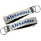 These key fob keychains are made from a polyester weave, right here in the USA. They feature a silver, metal clasp, attached to a round keyring. The piece gives the personalized wristlet a beautiful, finished look. Your customized design is printed on the outside of the keychain strap. We carry these wristlets in two sizes: small, which is 5 inches in width, and large, which is 5.5 inches in width.