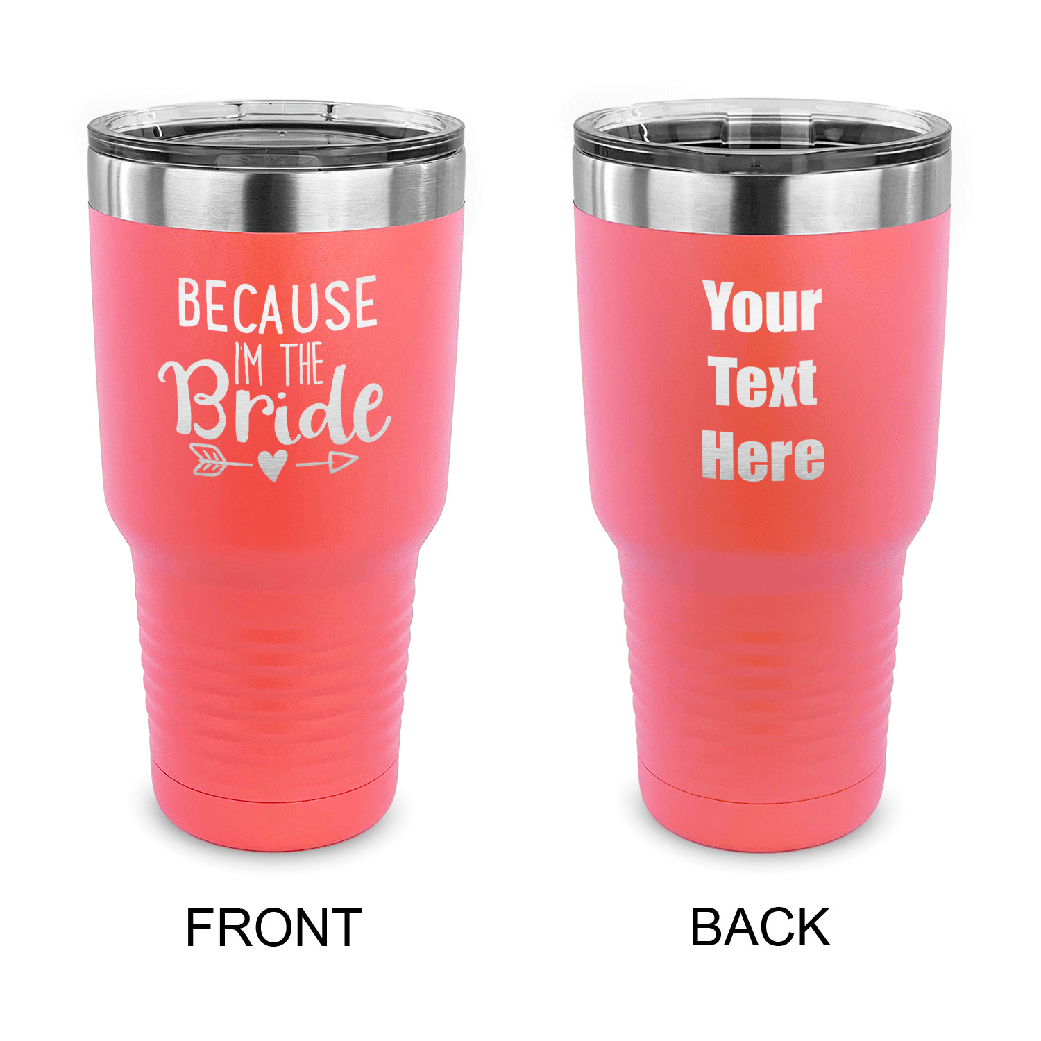 With the 5 colors - Black, Navy, Red, Pink and Coral, you are sure to find a cup to fit your personality. You can chose to engrave on the front or the front and back of the cup. Use our design studio to design your own cup and we laser engrave it for you.