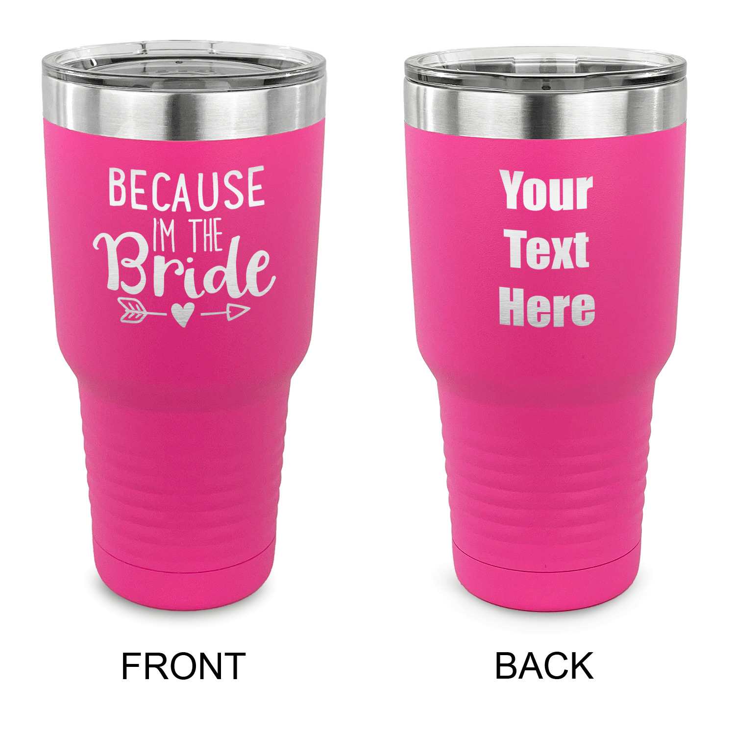 With the 5 colors - Black, Navy, Red, Pink and Coral, you are sure to find a cup to fit your personality. You can chose to engrave on the front or the front and back of the cup. Use our design studio to design your own cup and we laser engrave it for you.