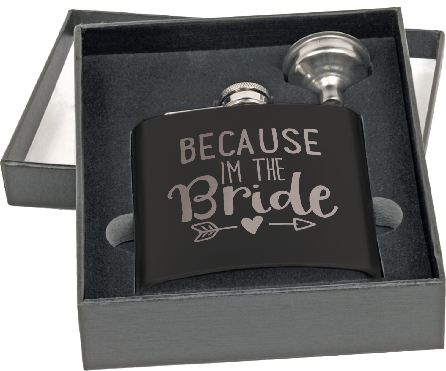Built from a stainless steel and then covered with a black coating, this hip flask, has a very classy appearance. Similar to the standard flask, this stainless steel flask has the traditional curved shape for a snug fit in your palm. This flask set also includes a traditional screw and flip lid and liquid funnel in a gift box. At 4 by 4.5 inches, this flask can hold up to 6 ounces. Your personalized design is laser-engraved across the front of this flask.