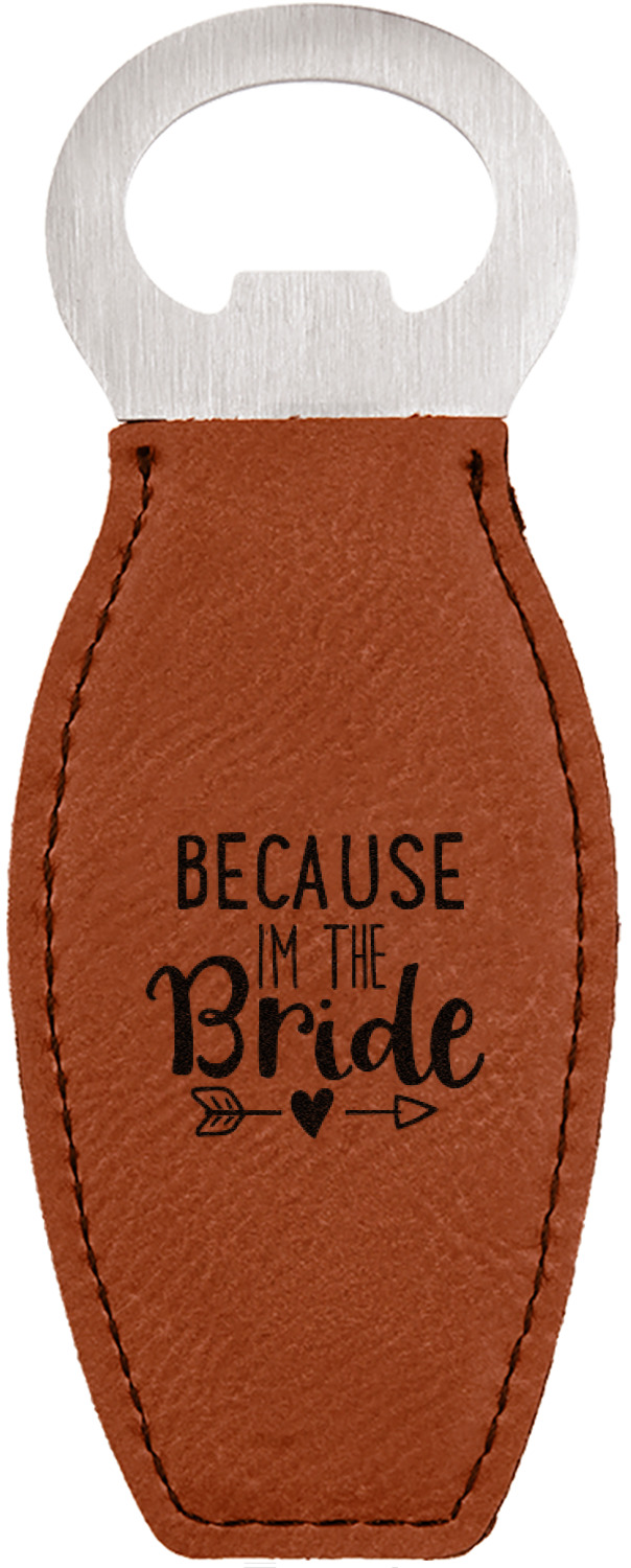 Built from stainless steel, these custom bottle openers are wrapped in a cognac-colored leatherette. Sharp, black stitching lines the edges for extra durability and a finished touch. Your personalization is laser-engraved onto the surface of this leatherette, leaving behind a crisp, black coloration. At 4.6 by 1.8 inches, this beer bottle opener gives you much of leverage when trying to open a stubborn bottle. On the opposite end of the opener, you'll find a magnet that you can use to display your new, unique bottle opener!