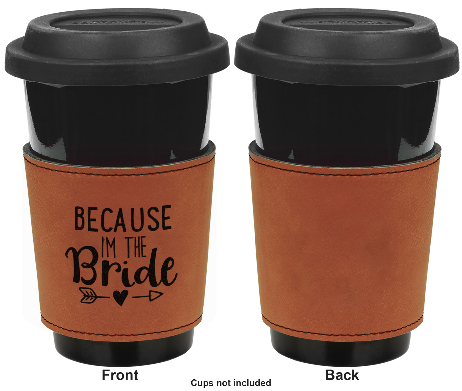 This cup sleeve is made from a suave, cognac-brown leatherette and finished with an intricate, black stitch. The interior of this can sleeve is fabricated from a thin foam material to help insulate your mug's contents. The sleeve is specifically made to suit tapered glasses or mugs, so the top's diameter is 3.5 inches, while the bottom's diameter is 2.75 inches. Your customized design will be laser engraved into the leatherette, leaving behind crisp, black imprint. With these products, we provide you with the option of engraving the front and back, or the front only.