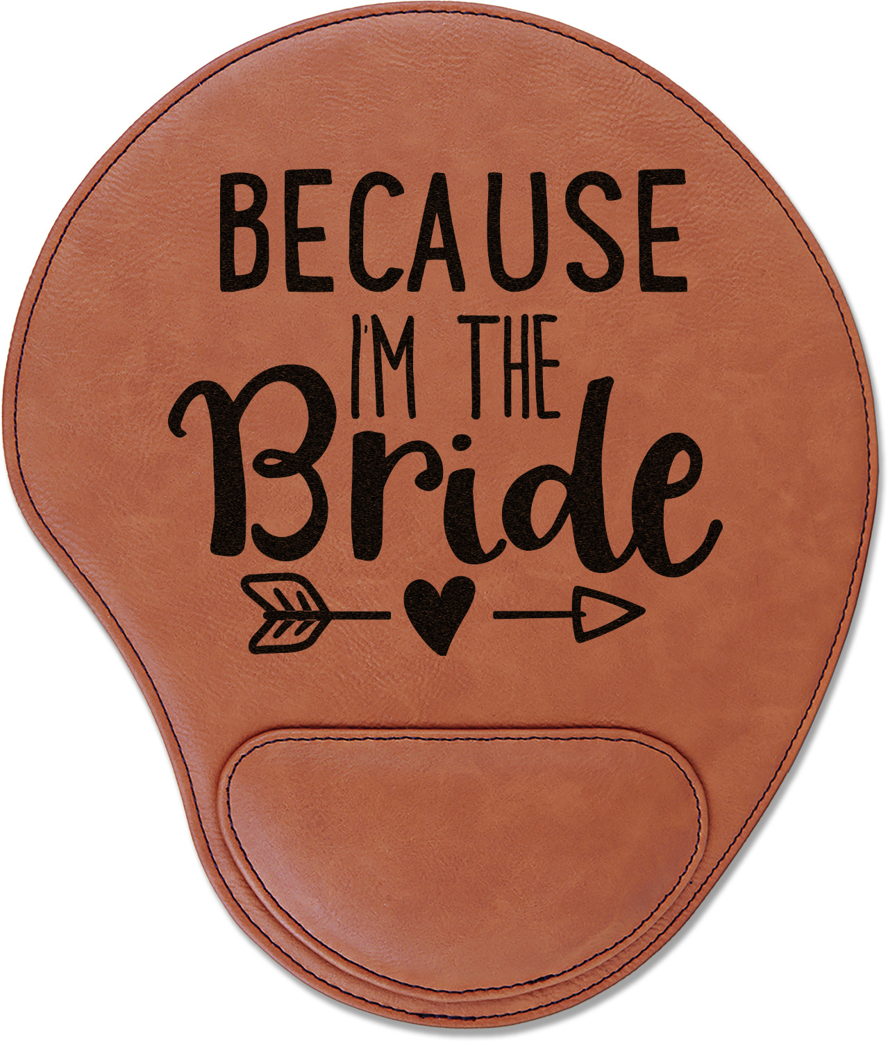 In a rounded shape, this mouse pad is made of a luxurious, cognac-colored leatherette. The nature of this material allows your mouse to glide smoothly across its surface. Strong stitching lines the edges to guarantee stability and strength. As added support for tired wrists, your personalized mouse pad features a supportive wrist rest at its bottom. This model measures at 10.25" x 9", while its wrist pad is approximately 5" x 2.75", with a thickness of 0.75". Your personalized design is laser engraved into the front face of this mouse pad.
