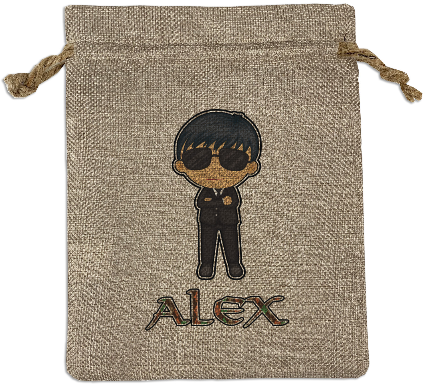 We sell our Burlap Gift Bags in 3 variant sized bags. Made with burlap polyester, each personalized bag can be secured with a twine drawstring pull. Your custom design is available to print on one side or both sides - completely up to you! The sizes of the bags measure approximately 4.5" x 6.5" for the smallest size, 6.5" x 8.0" for the medium size, and 6.5" x 13.5" for the large-sized bag.