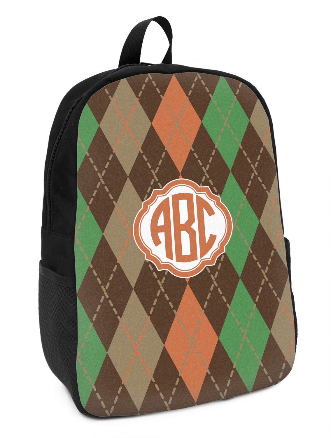These small backpacks are made of a durable black canvas material with your personalization right on the front. The two shoulder straps are padded and easily adjustable. The bag itself measures at about 11" W x 15" H x 5" D. It's the perfect size for elementary aged kids or adults who want a smaller backpack. On the top of the bag you will find a handle to hang or carry your backpack by as well as a large zipper closure to keep all of your belongings safe inside. On each side of your backpack is a mesh pocket for a small item or water bottle. Inside your backpack you will find a spacious area with a small zipper pocket and a padded laptop slot that will fit up to a 13" laptop (13" being very snug). This is the perfect bag for any student that needs a couple books and their laptop with them at all times. It also works great as a carry on for traveling!