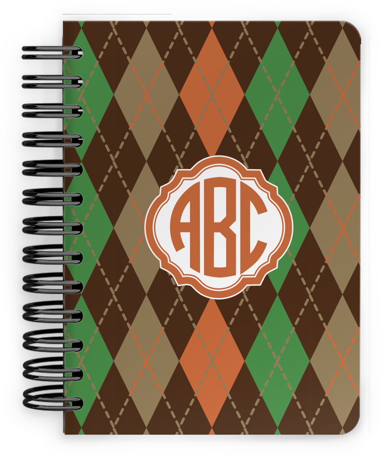 This spiral notebook includes 75 sheets of thick, ruled paper. The front and back of this custom notebook is made of a robust, laminate, plastic covering. We print your personalization on these two panels, underneath a glossy finish, which emphasizes the colors of your design. The two panels and the sheets of paper are held together by a sturdy, black coil. The paper within your bound notebook is perforated for easy, clean tearing.
