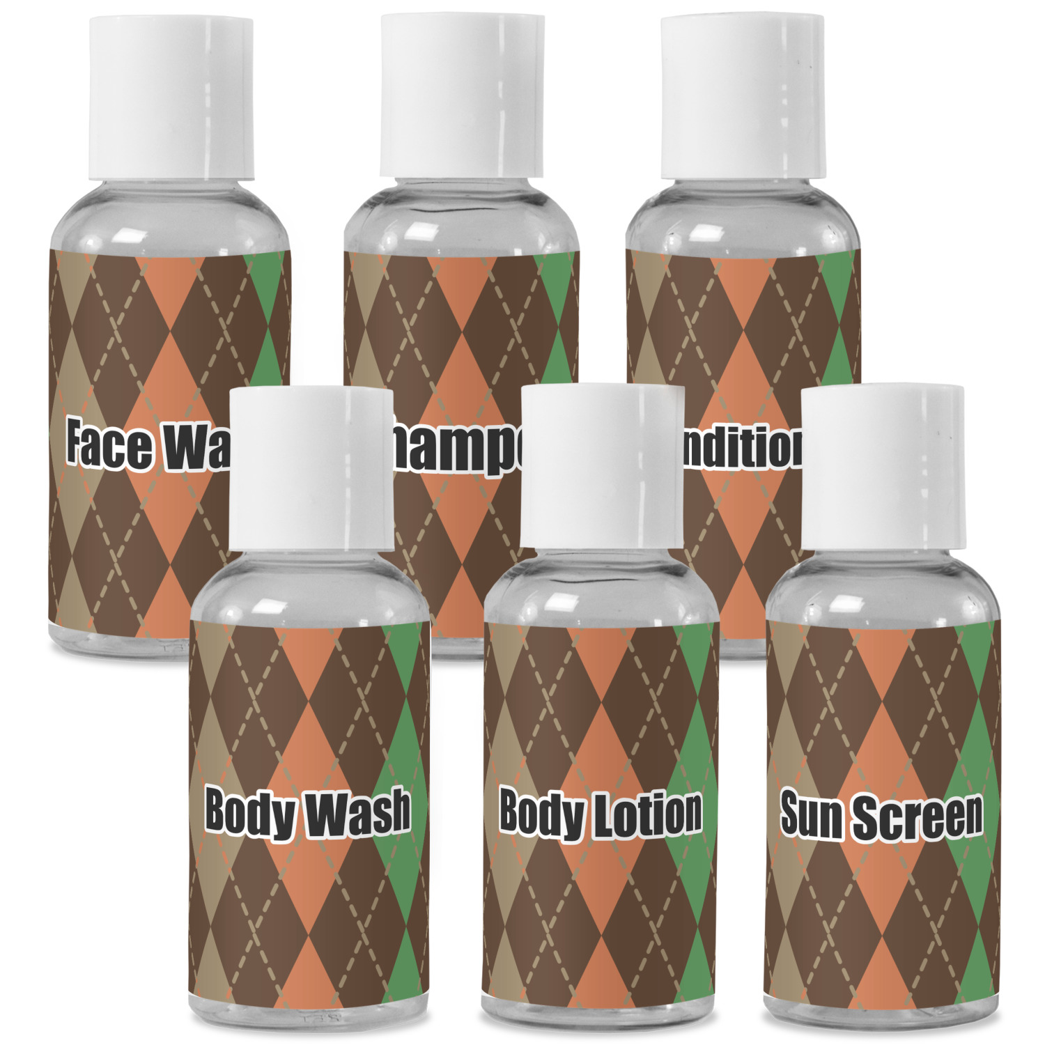 These soap and lotion travel bottles are the perfect place to start. Each set comes with 6 clear plastic bottles with white pop top lids. The bottles are cylindrical and can hold approximately 2.7oz. Perfect for plane travel!