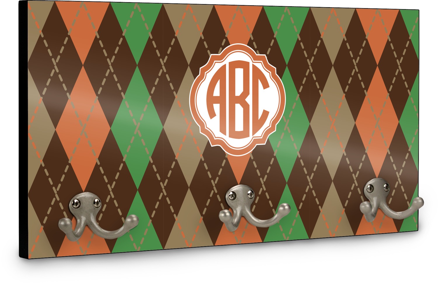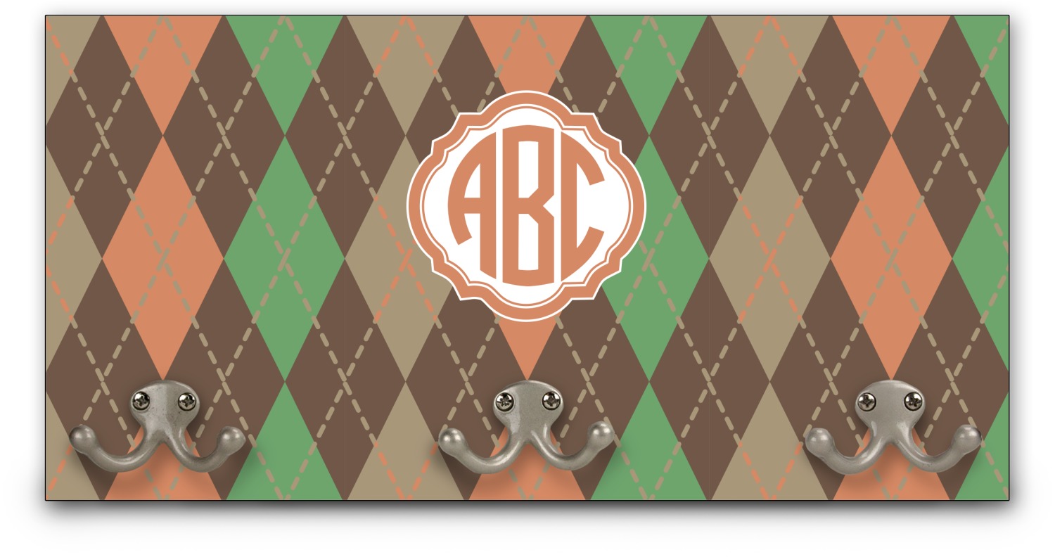This coat rack is the perfect way to add some personality to your wall or entryway. The board is made of a strong maple that is approximately 16" x 8". The three 2-prong hooks are a sturdy metal that have three screws attaching them to the board. Your design is printed right onto the front of the board while the back and sides are a simple black.