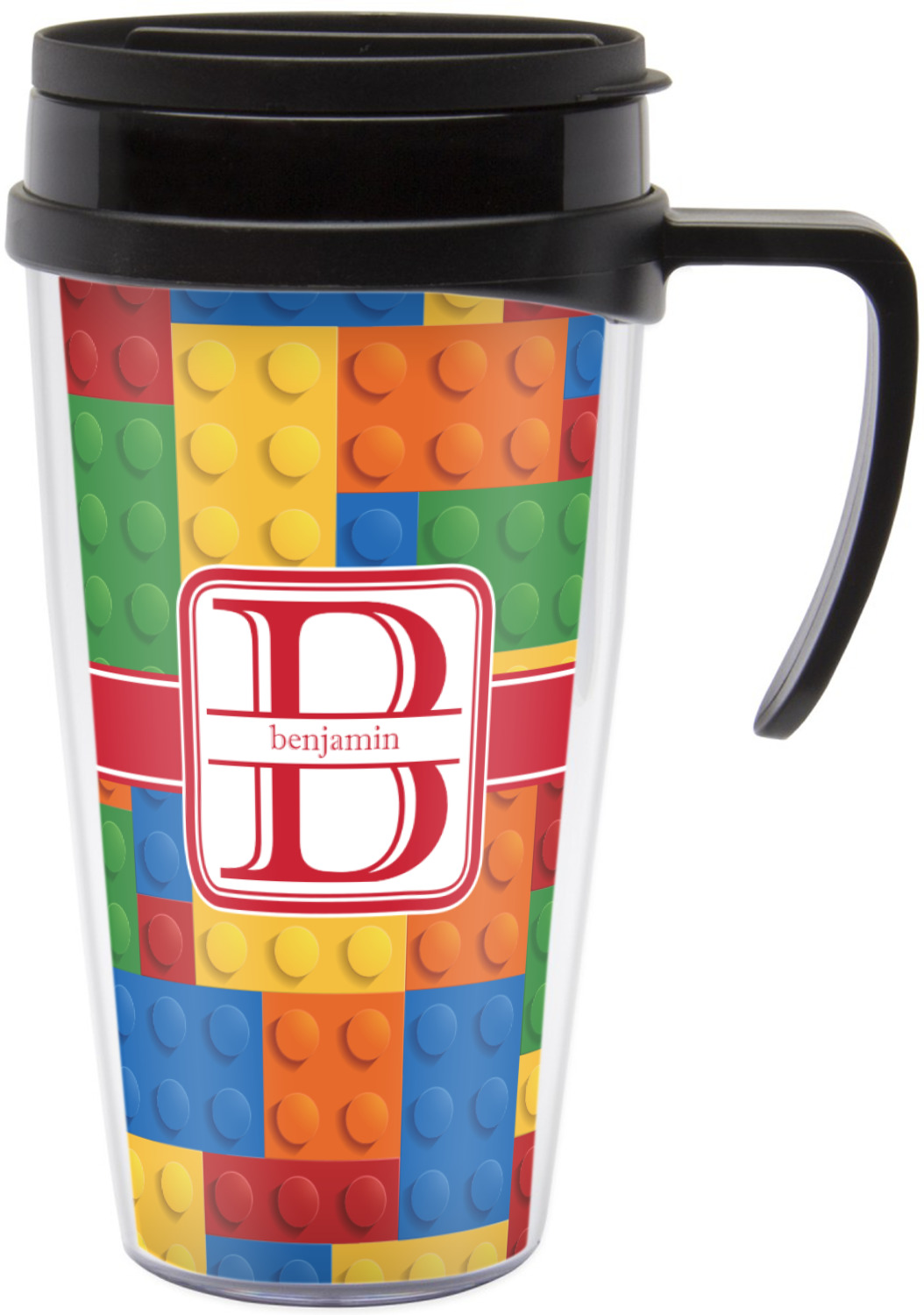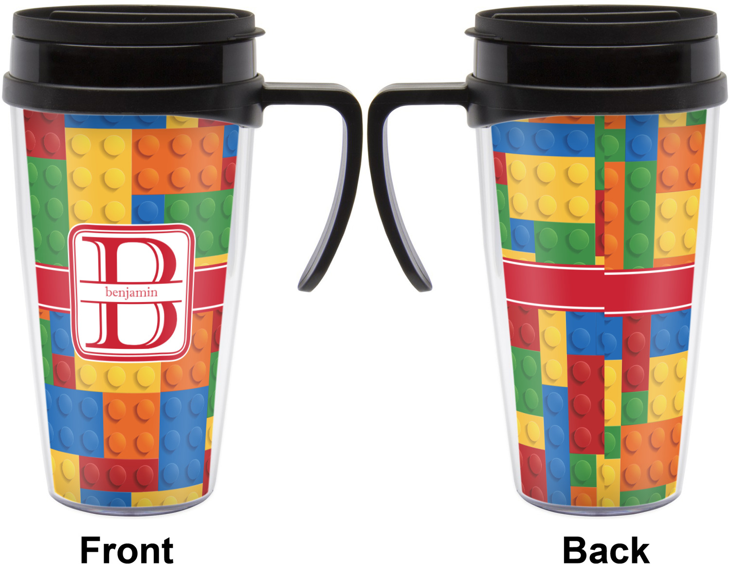These thermal mugs are free of BPA, and insulated, to keep your drinks hot or cold. The black, snap on lid and the slider for sipping allows you to conveniently sip your drink without constantly worrying about a disastrous spill. We offer this mug with and without a handle, to better suit your needs. Each custom thermal mug holds up to 16 ounces of liquid and displays your customization on all sides on premium gloss media inserts.