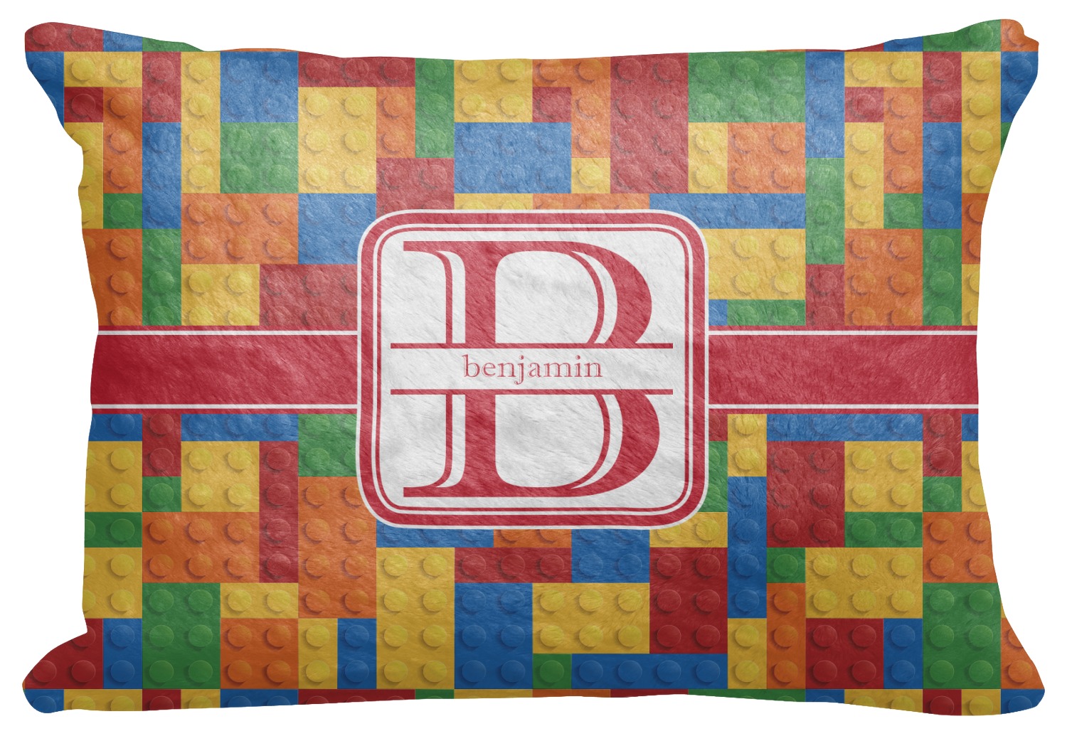 This building blocks design is made up of blocks of different shapes. sizes and colors all fitted together. We have featured a red ribbon along with square label and an initial and name for personalization.