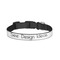 This sturdy collar, made from a durable nylon weave, will outlive your dog's episodes of excited tugging and pulling. Courtesy of its thick plastic buckle and adjuster, this collar is adjustable and accommodating of any dog. Structurally, the collar is a single piece of nylon weave that is sewn together, and features a solid metal loop where you can attach a leash or dog tag. We print and display your dog's name and pattern across the middle of the personalized dog collar.