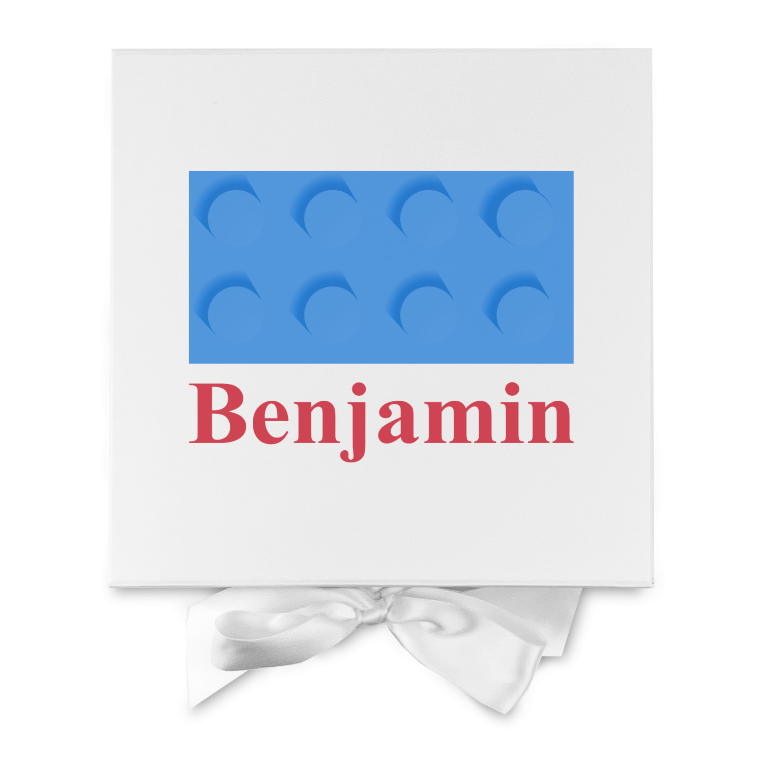 This building blocks design is made up of blocks of different shapes. sizes and colors all fitted together. We have featured a red ribbon along with square label and an initial and name for personalization.