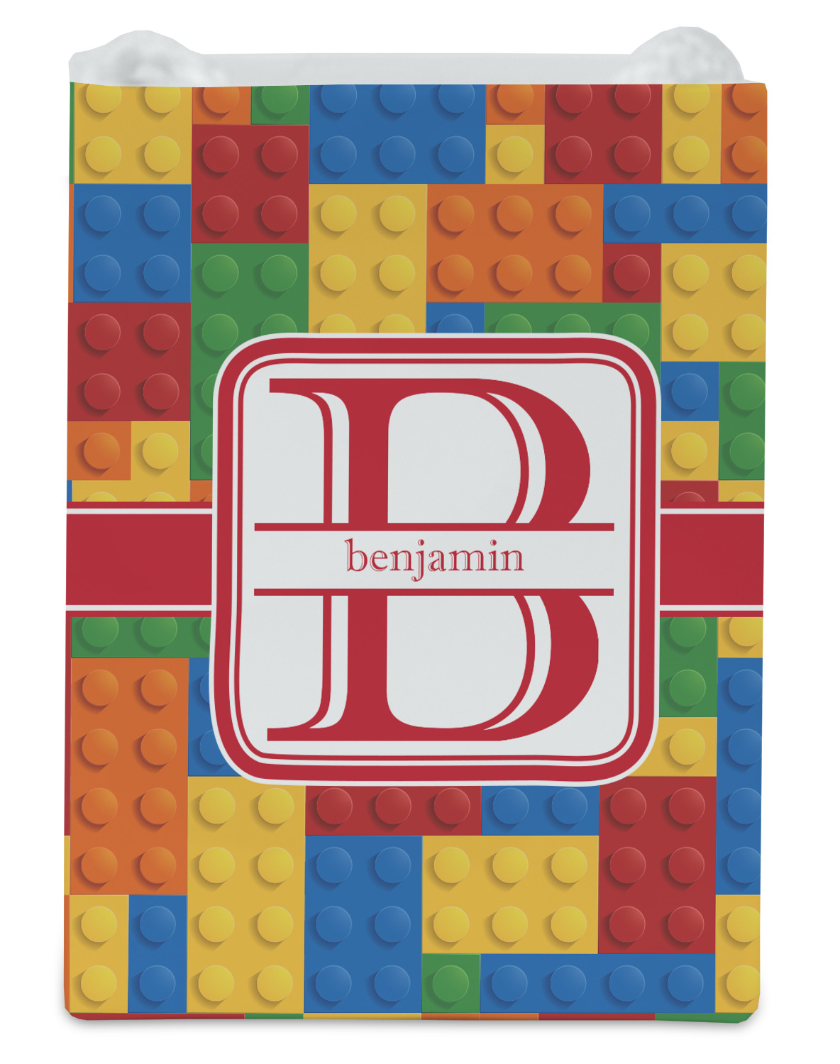 This building blocks design is made up of blocks of different shapes. sizes and colors all fitted together. We have featured a red ribbon along with square label and an initial and name for personalization.