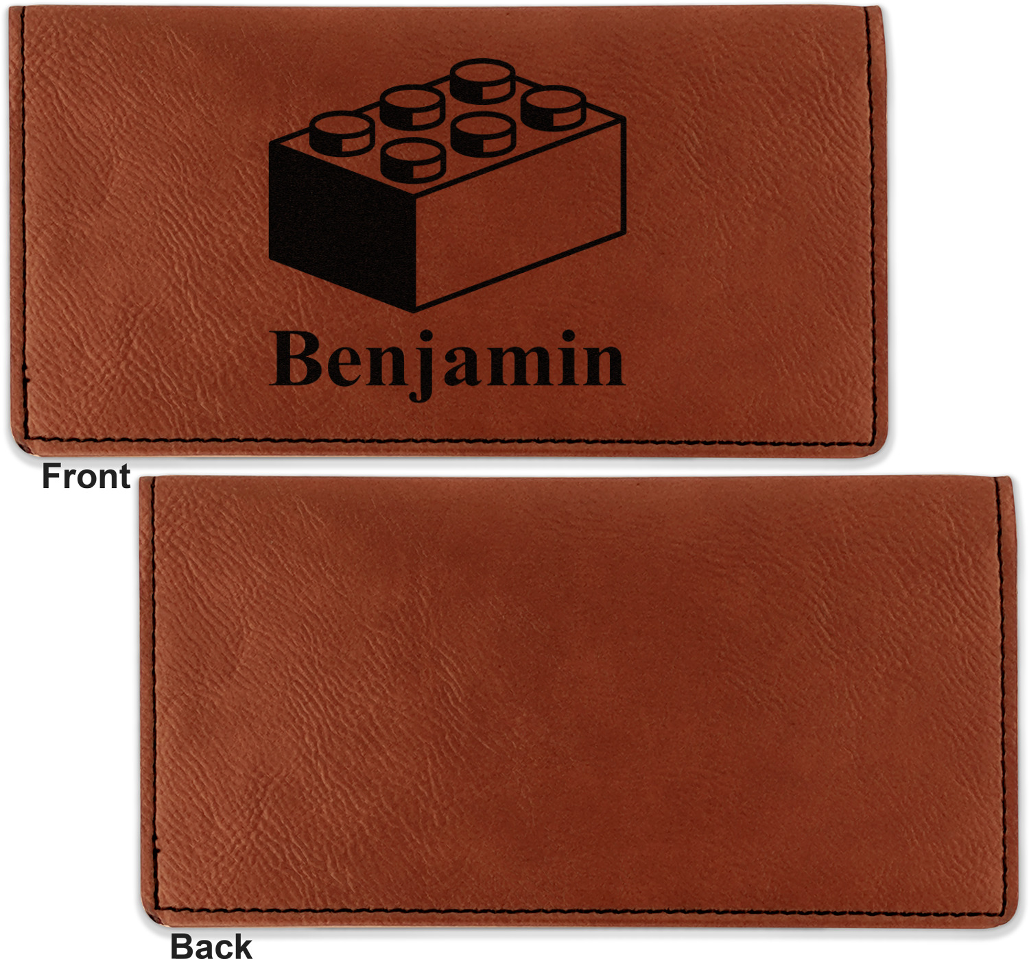 Go into our design center to start personalizing. Your checkbook cover will be laser engraved, making the graphic or text a black color. Choose a fun saying, monogram, or font to go on your checkbook cover. You have the opportunity to do it double or single sided.