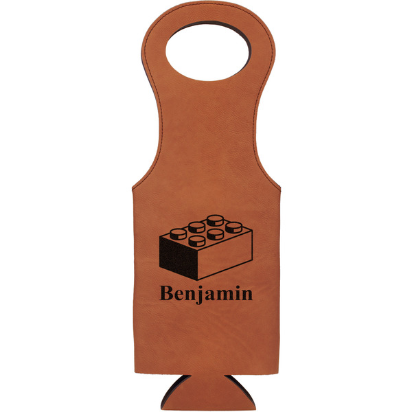 This wine carrier is made from a stunning leatherette, in a cognac-brown color. Strong, black stitching lines the sides of your wine bottle bag and provides extra durability. The interior is lined with a padded, black material to allow for a snug fit once your bottle is placed inside. At the top of this wine gift bag, you'll find two oval shaped handles that elegantly complements the rest of the bag's style. We provide you with the option of laser-engraving the front, or the front and back of your new personalized wine bag!